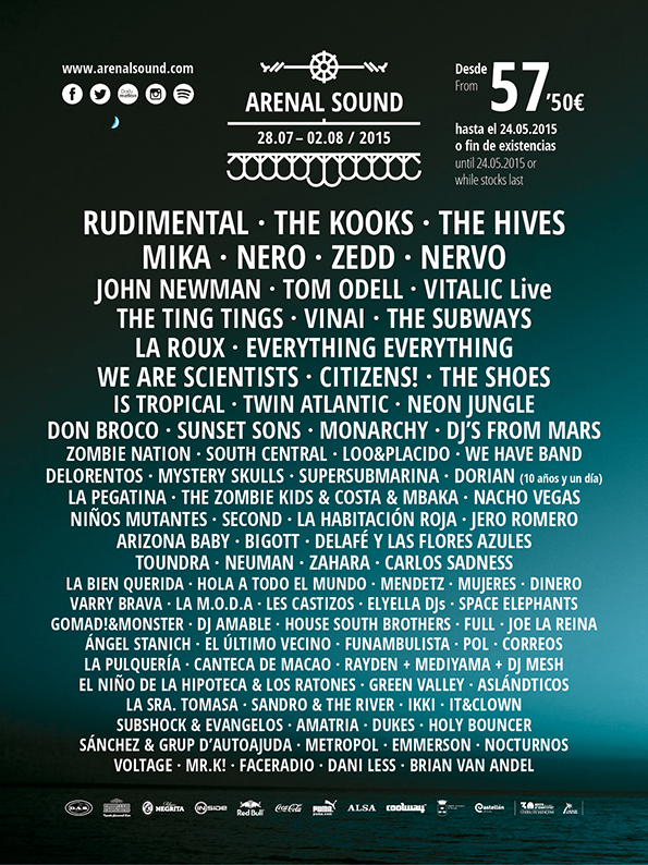 Después de anunciar a los londinenses Is Tropical, Neon Jungle o Dj’s From Mars, Arenal Sound lanza a The Hives como último cabeza de cartel. El line up queda encabezado por The Hives, Rudimental, The Kooks, Mika, Nervo, John Newman, Tom Odell, Vitalic, Zedd, Nero, Vinai, The Ting Tings y La Roux entre otros.