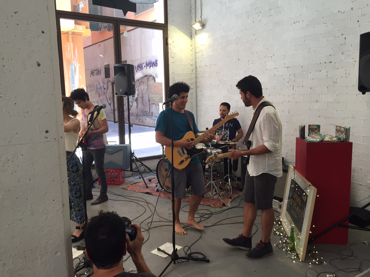 Acostumbrados a las actuaciones en lugares “poco habituales”, no olvidemos que fueron protagonistas del Jukebus, en el que dieron un concierto en un autobús en marcha, los componentes del grupo estaban como en casa (de hecho Oscar estaba descalzo como si estuviera actuando en su salón para un grupo de amigos). El propio Oscar nos iba contando de qué iban las canciones, las historias que contaban, y eso es genial porque casi puedes imaginar cómo es el proceso creativo de sus temas, qué se les pasa por la cabeza cuando están delante del papel en blanco componiendo. Temas que ellos mismo producen (Pei es técnico de sonido), a su ritmo, con sus propios tiempos.