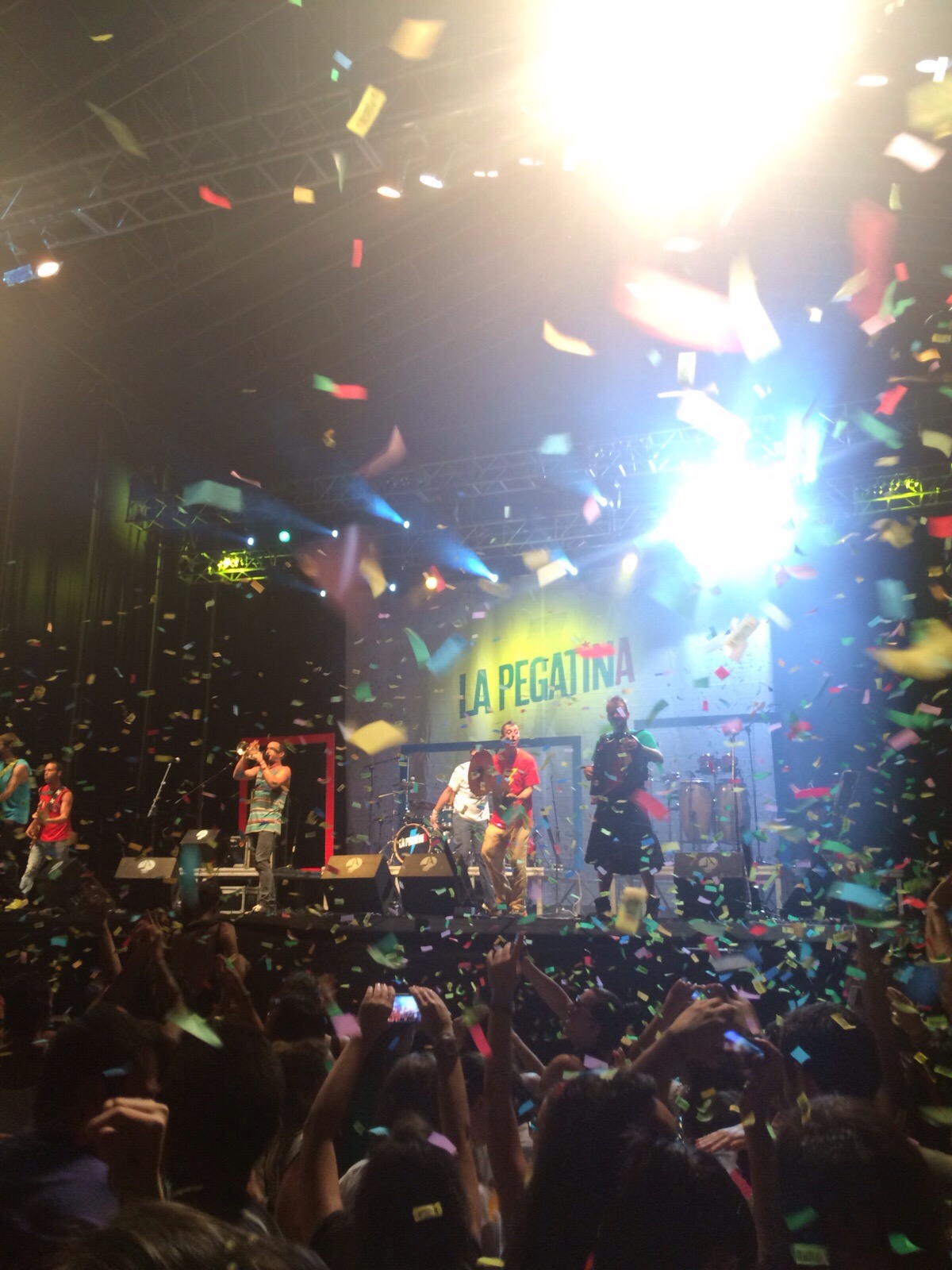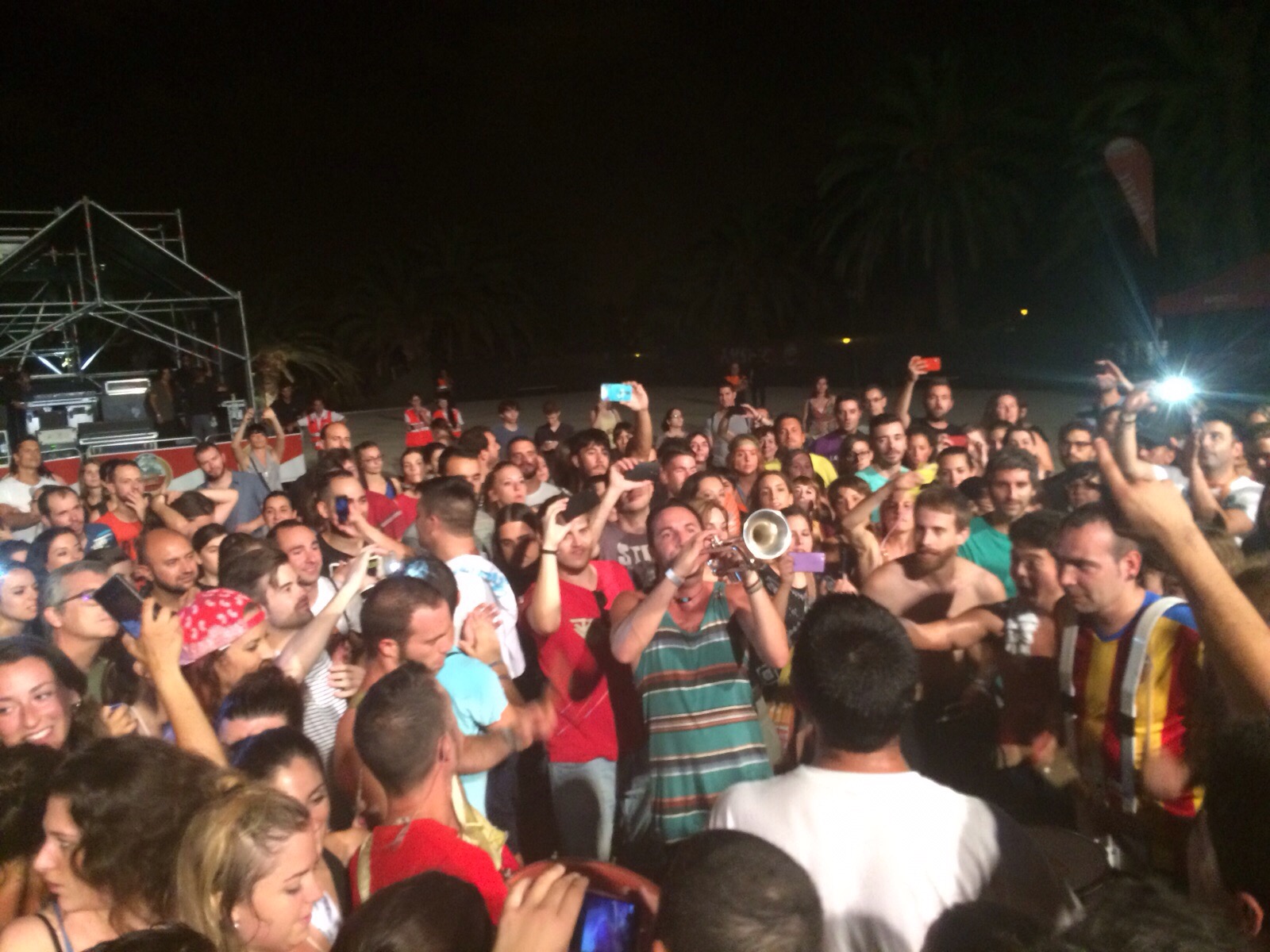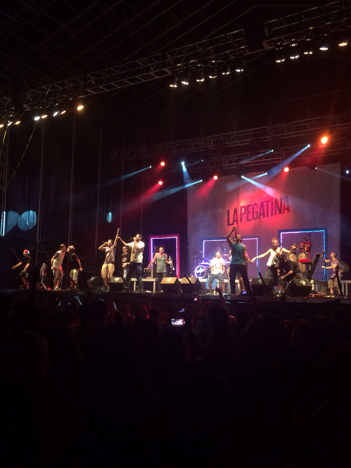 Al finalizar el concierto la explanada de los Jardines de Viveros fue llenándose de gente deseosa de disfrutar del concierto de La Pegatina. Los de Montcada i Reixac no defraudaron a sus fans y desde un primer momento marcado por una primera explosión de confeti supieron mantener el carácter festivo de todas sus canciones.