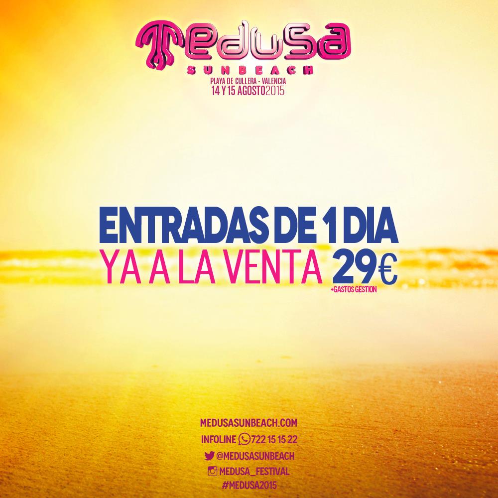 El Medusa Sunbeach Festival, uno de los más noveles festivales que ha aparecido en nuestro territorio, y que va a por la segunda edición, pone hoy a la venta 2000 entradas de día al precio de 29 euros (+ gastos de gestión). Pero, daos prisa, porque este precio sólo se mantendrá hasta el lunes, cuando subirán de precio.
