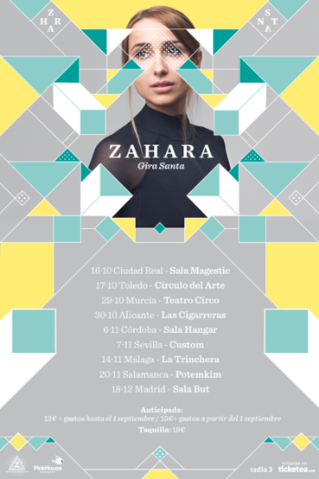 Zahara anuncia ahora la gira que la mantendrá ocupada hasta 2016 y que la llevará a Ciudad Real, Toledo, Murcia, Alicante, Córdoba, Sevilla, Málaga, Salamanca y Madrid, lugares en los que además de seguir presentando su último álbum, también hará un repaso por los anteriores.