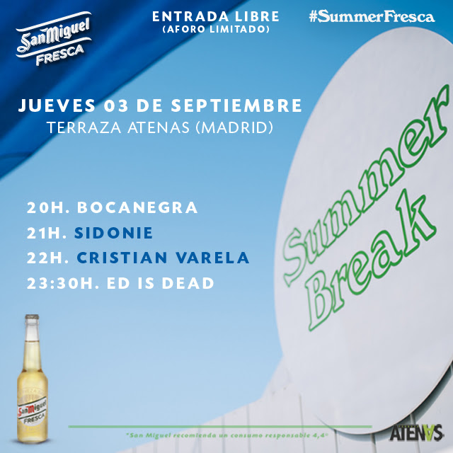 «Summer Break», la gira de verano de San Miguel Fresca, llega hoy a la capital de España para recordarnos que el verano aún no se ha acabado y ofrecerá una combinación irresistible: música, cerveza y una de las terrazas más conocidas de la ciudad.