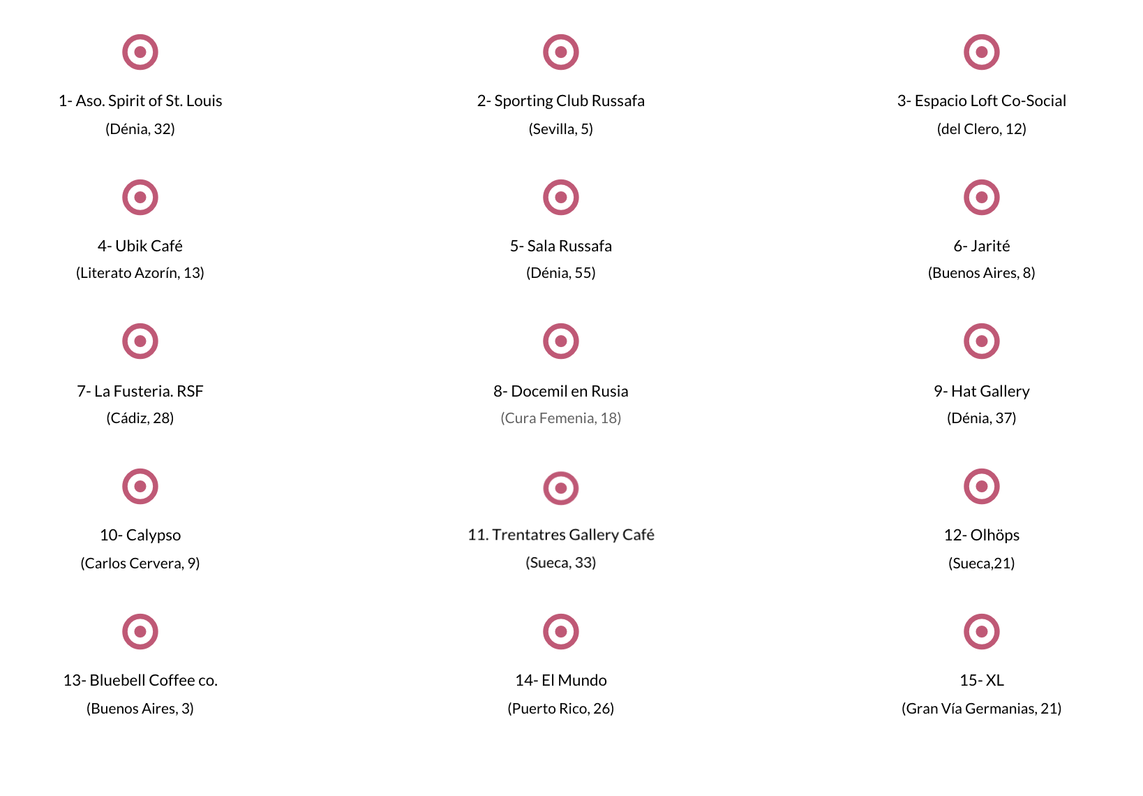 Todos los artistas y locales participantes son socios colaboradores de la Asociación.