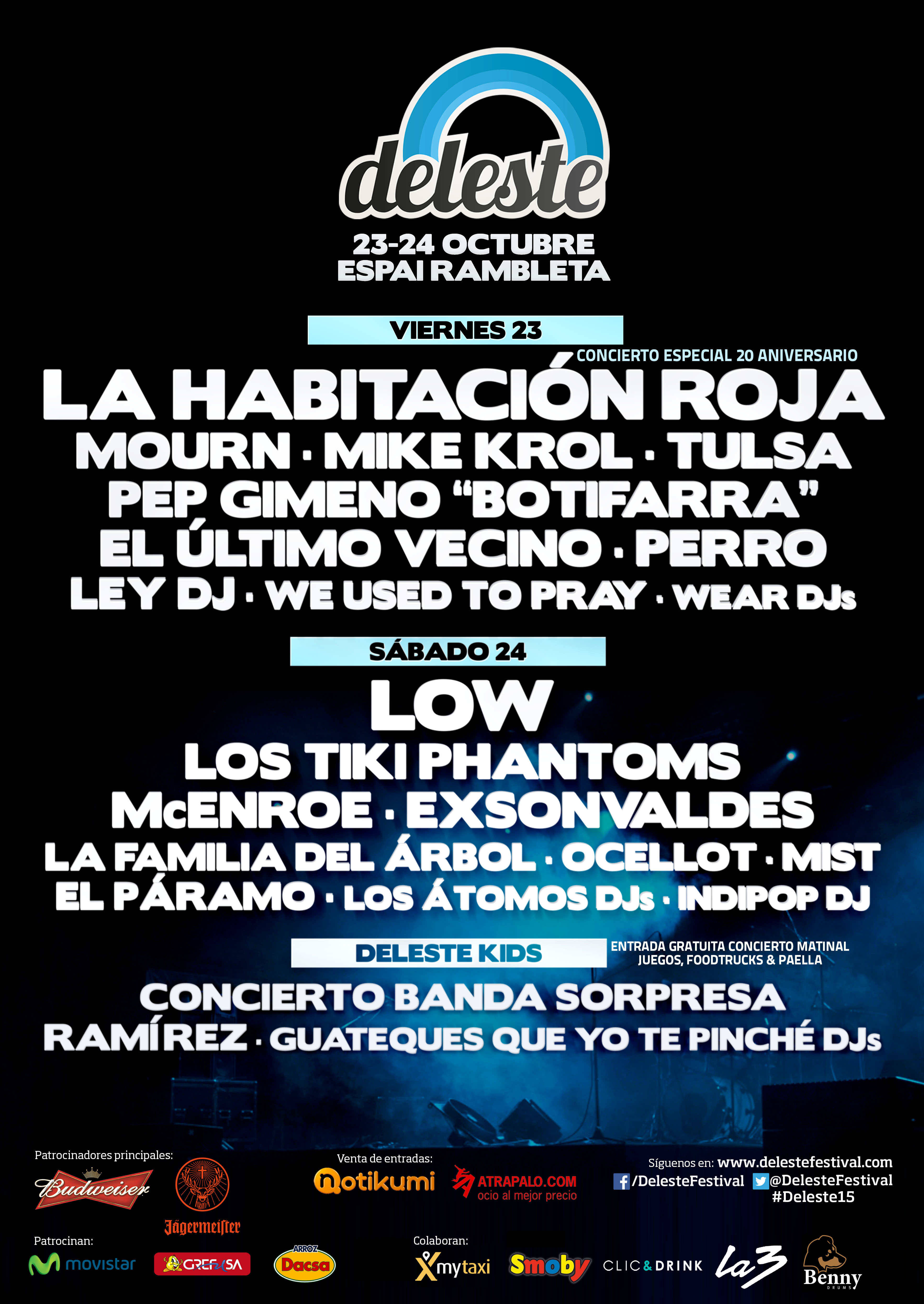 Los activos de la primera jornada, el viernes 23 de octubre, serán La Habitación Roja (a través de un concierto especial en el que repasará sus 20 años de trayectoria), la incursión y el morbo de ver a Pep Gimeno “Botifarra” en un contexto poco habitual, la insultante juventud de los poderosos Mourn o los murcianos Perro estrenando canciones. El sábado será el turno de los deseados Low (los norteamericanos vienen a presentar nuevo disco, ), los ritmos bailables y sin paliativos de los surferos Los Tiki Phantoms, la intención McEnroe de revivir la magia de su anterior paso por el festival o la elegancia indie de los franceses Exsonvaldes.