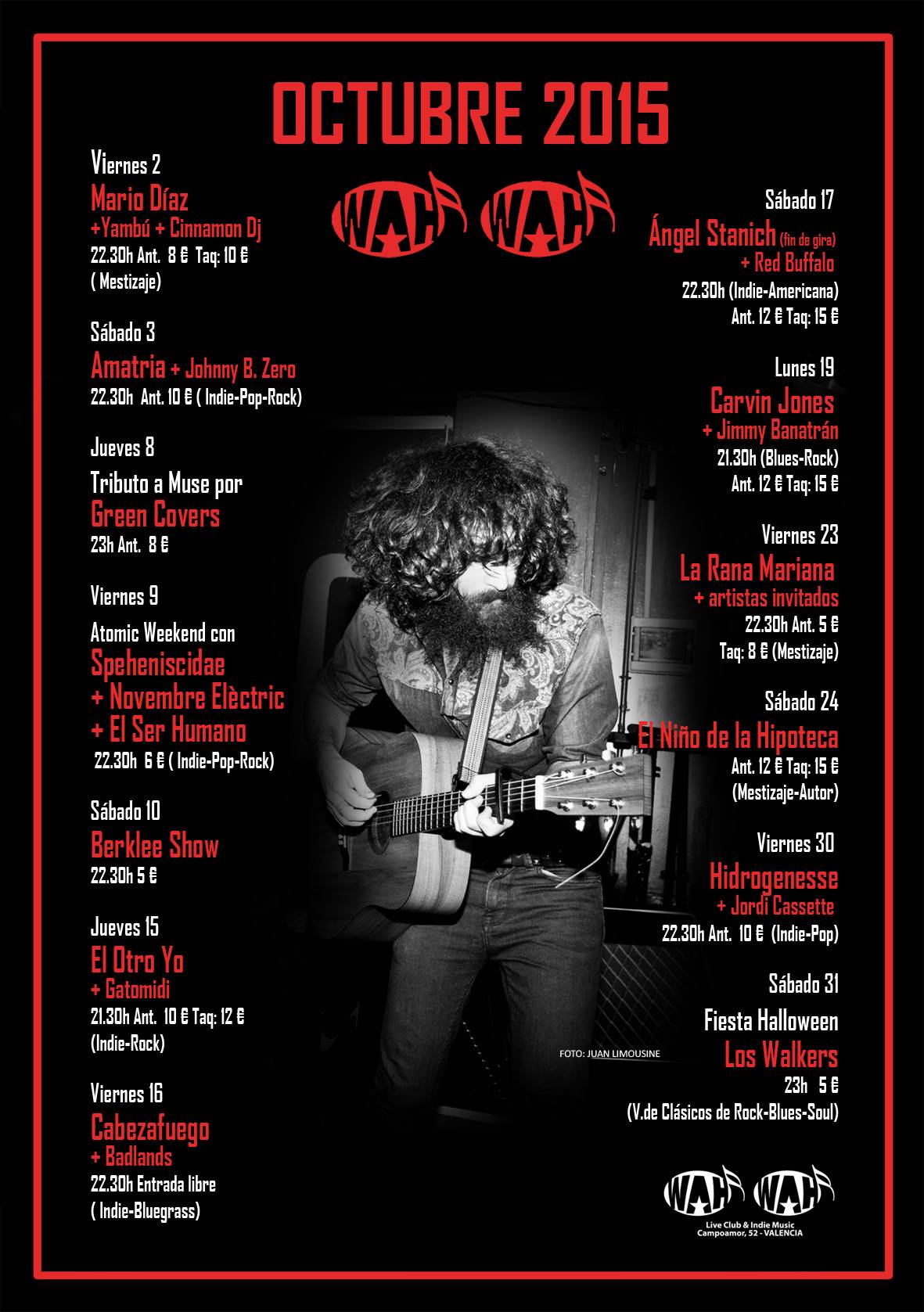 Así que aquí os dejamos el cartel con toda la programación de octubre de la Sala Wah Wah, que viene pero que muy cargadita.