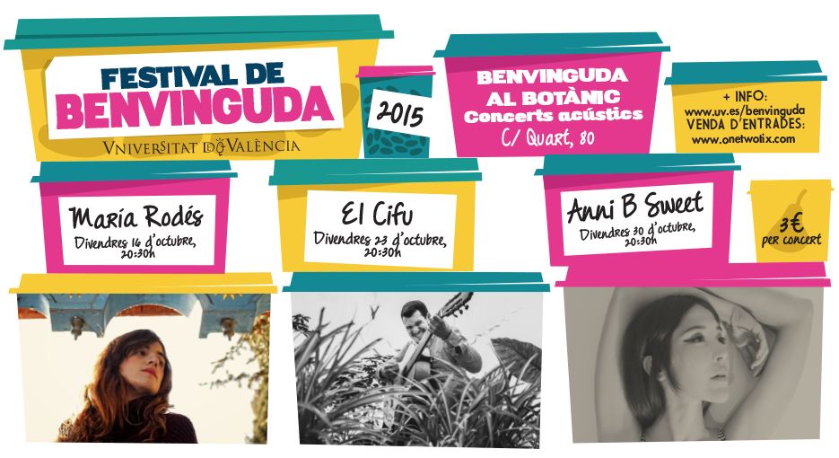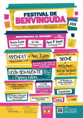 Una edición, la de este 2015, con un cartel de auténtico lujo y que se celebrará durante el mes de octubre en diferentes puntos de la ciudad, concretamente en el Jardín Botánico de Valencia, la sala Noise y la sala el Loco. Grandes nombres como Sidonie, León Benavente o Anni B Sweet conforman el elenco de artistas que actuarán en esta edición.Conciertos de Bienvenida