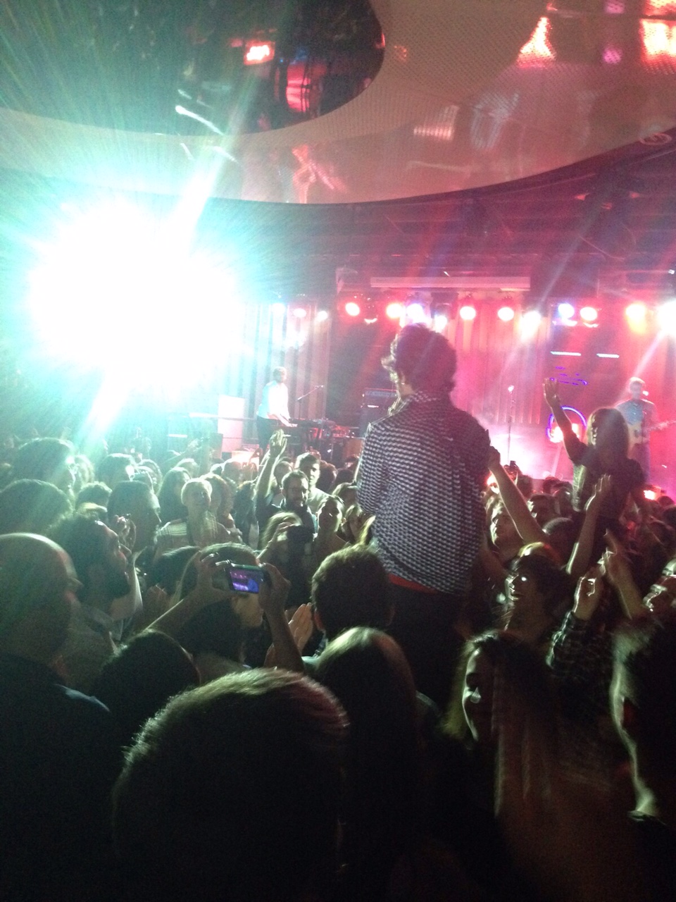 El público estaba ya completamente entregado, y enloqueció con el baile sensual de Marc en Yo Soy La Crema, y gritó a pleno pulmón el estribillo de Un Día Más En La Vida, y acudió al encuentro de Marc cuando recorrió en volandas el recinto mientras sonaba la magnífica Un Día De Mierda, y saltó como si no hubiera mañana con El Incendio, justo antes de que Sidonie se tomara un descansito y se metieran en el camerino para coger fuerzas.