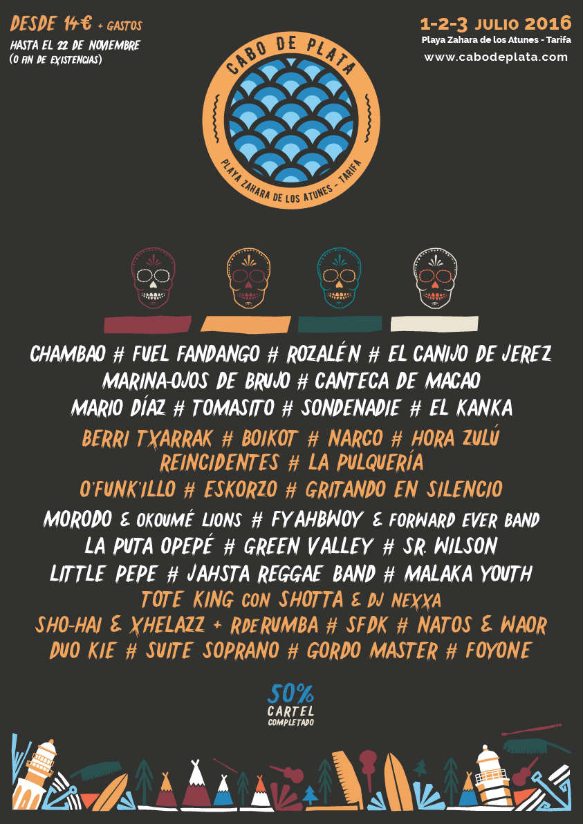 El festival Cabo de Plata ha anunciado hoy la segunda tanda de confirmaciones completando así el 50% de su cartel: Fuel Fandango, Rozalén, Sho Hai & Xhelazz + RdeRumba, Jahsta Reggae Band, Boikot, Duo Kie, Fyahbwoy & Forward Ever Band, Hora Zulú, Sondenadie, Foyone, Malaka Youth, Narco, Gordo Master, La Puta Opepé, Mario Díaz y La Pulquería.