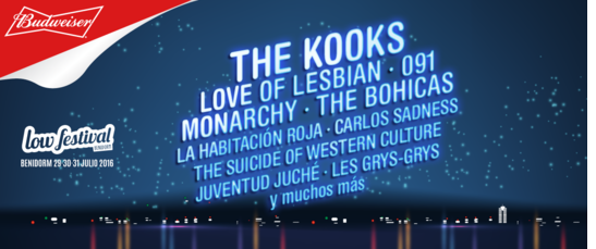La organización del festival ha anunciado esta mañana cinco nuevos nombres que se unen al cartel del próximo Low2016, que se celebrará en Benidorm del 29 al 31 de julio. Los nombres son The Kooks, Monarchy, La Habitación Roja, The Suicide Of Western Culture y Les Grys-Grys.