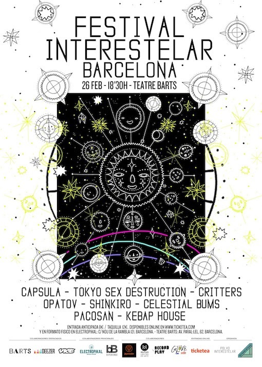 El próximo 26 de febrero, verá la luz la primera edición del Festival Interestelar contará con las actuaciones de algunas de las bandas emergentes más relevantes del panorama nacional. Es el caso de Pacosan, con un discurso a caballo entre la electrónica y la psicodelia, y con un recomendable primer trabajo editado vía Bankrobber. Precisamente la psicodelia será uno de los ejes sónicos de la noche y estará representada por los pujantes Celestial Bums, Shinkiro (un diamante en bruto formado por tres ilustres músicos de la escena barcelonesa), y uno de los grupos revelación del 2015, Opatov, quién defenderán su notable álbum «Bacán» en el imponente escenario del Teatre BARTS.