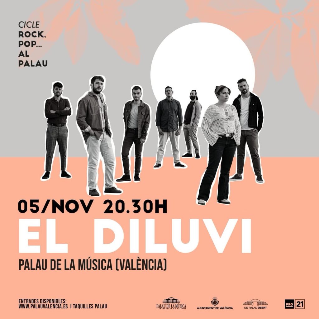 El Palau de la Música de València reanudará el ciclo dedicado al pop y el rock el próximo jueves 5 de noviembre con la actuación del grupo El Diluvi. El festival también incluirá la presencia de Funambulista, Juno, Senior i el Cor Brutal, Joan Miquel Oliver y Anni B Sweet. Los conciertos tendrán lugar en el hall del auditorio del paseo de la Alameda con entrada gratuita.