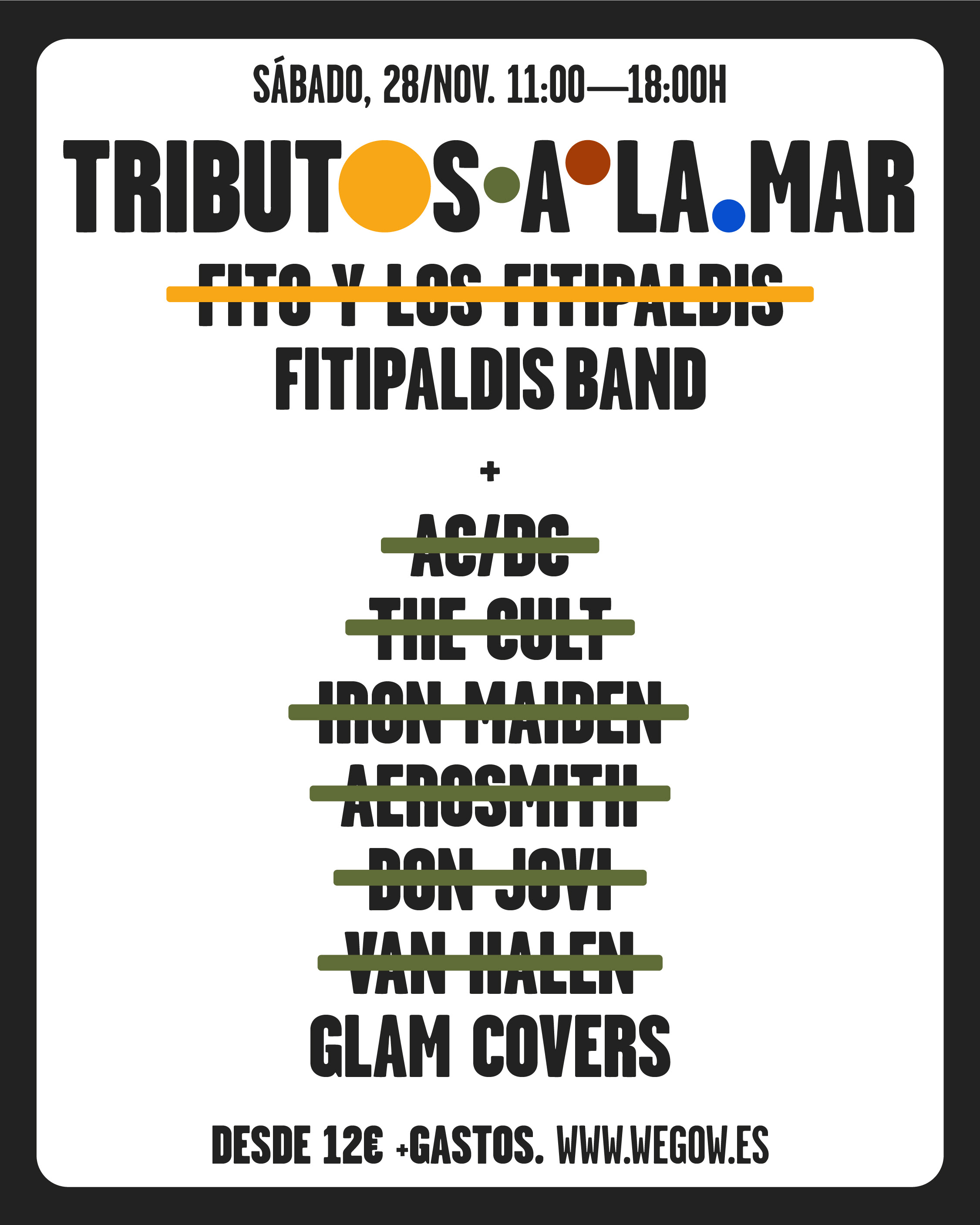 La primera de las citas será el próximo sábado 28 de noviembre en La Grada de Marina Sur con las actuaciones de Fitipaldis Band, reconocida como una de las mejores bandas tributo y mejor tributo a Fito, mimando todas y cada una de las canciones de la banda liderada por el bilbaíno. Además, tendremos la oportunidad de disfrutar de Glam Covers, repasando éxitos de bandas tan importantes como Bon Jovi, AC/DC, Deep Purple o Iron Maiden.