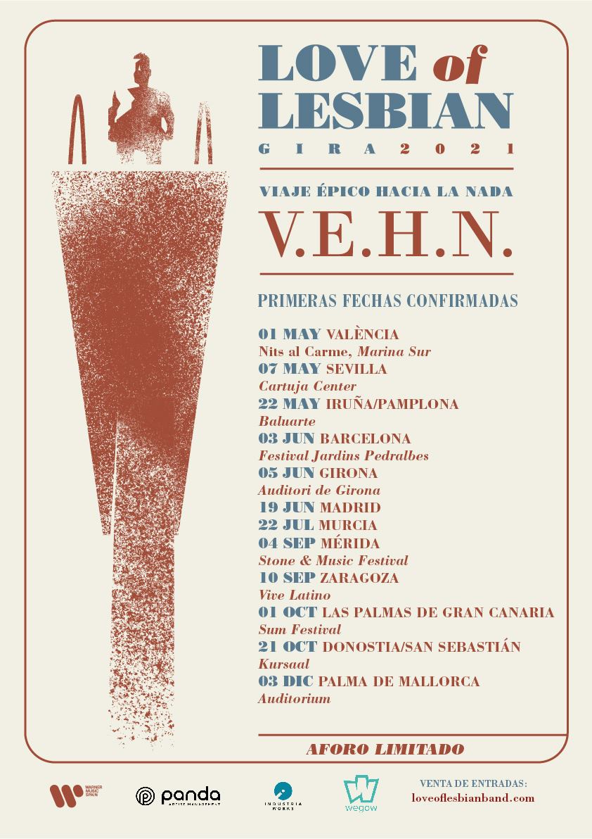 El miércoles 3 de marzo está lleno de novedades para Love of Lesbian. Una de ellas viene cargada con las nuevas fechas de los catalantes por españa para presentar este 2021 V.E.H.N. (Viaje Epico Hacia la Nada), su nuevo álbum a punto de ver la luz.