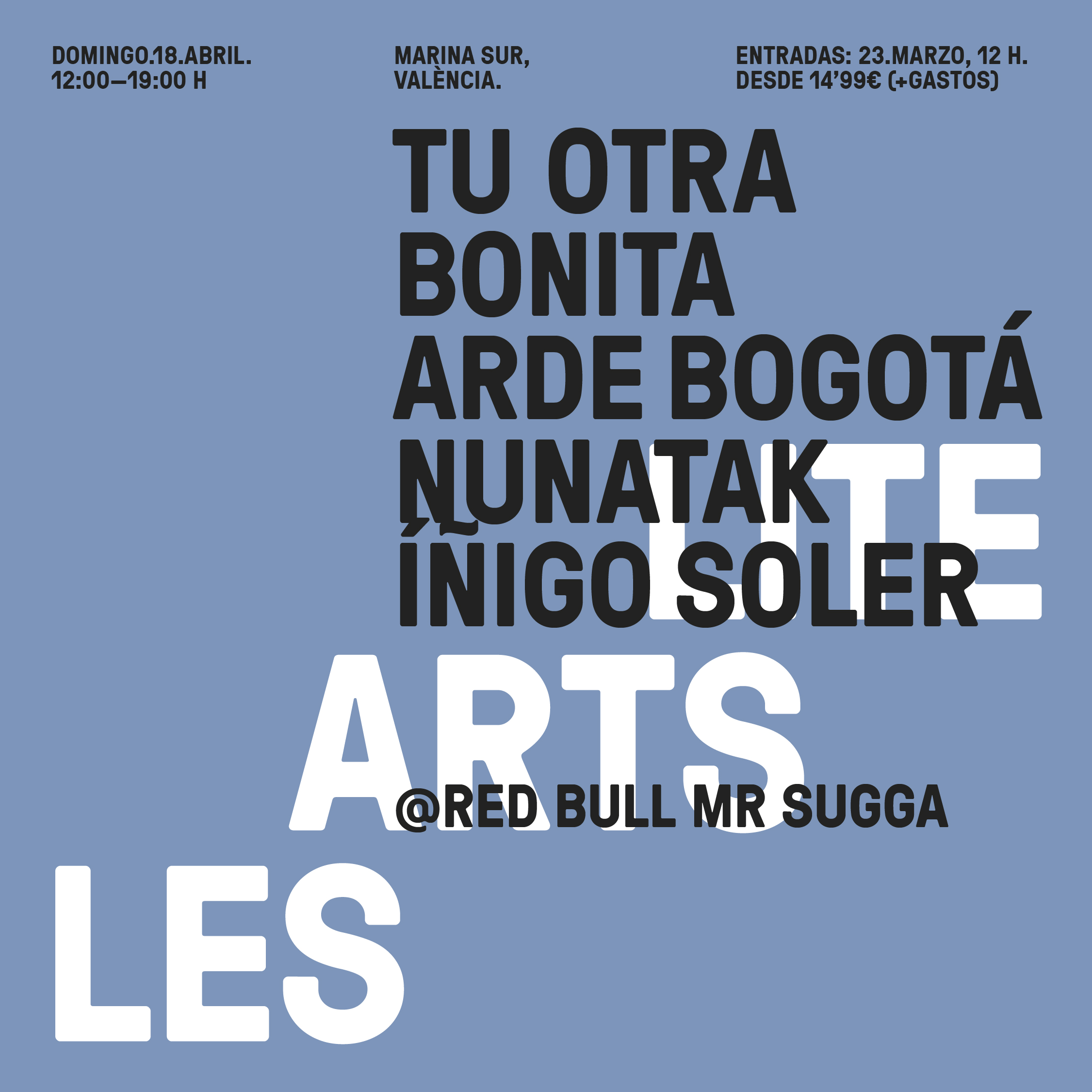 Los artistas que actuarán en este primer Les Arts Lite del año son Tu Otra Bonita, que acaban de lanzar su nuevo y esperado álbum “Crema”; Arde Bogotá, sin duda una de las sensaciones del año y una de las bandas que más dará que hablar en un futuro muy cercano; Nunatak y el valenciano Iñigo Soler. Las entradas saldrán a la venta el próximo martes 23 de marzo a las 12:00h desde 14,99€ + gastos en Wegow. El aforo es limitado y el recinto es un espacio abierto, diáfano y seguro al lado del mar con todas las medidas de seguridad requeridas.