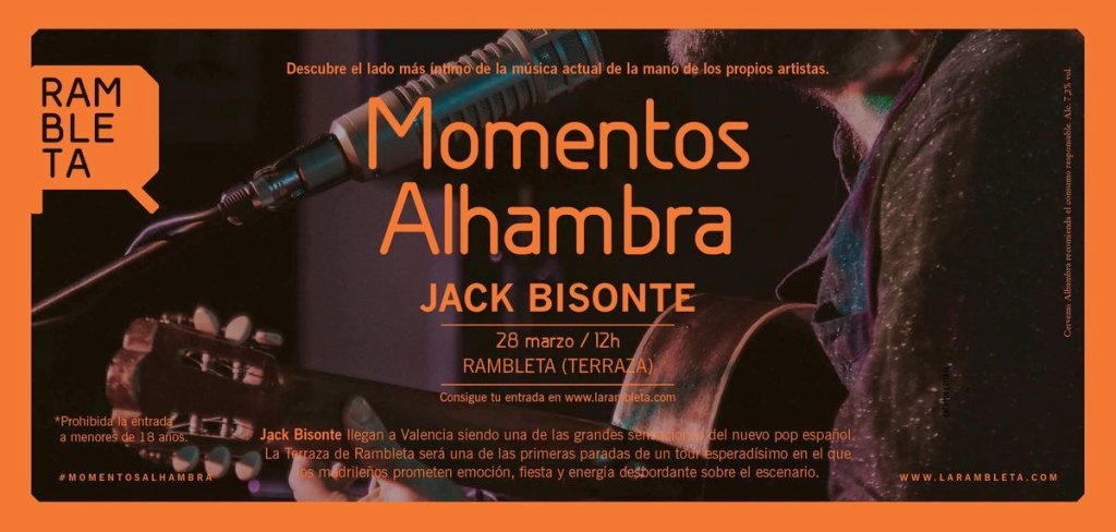Rambleta inaugurará este mismo domingo 28 de marzosus terrazas de música en directo con un ciclo de ‘Momentos Alhambra’. Jack Bisonte será el primer protagonista, una de las grandes sensaciones del nuevo pop español.