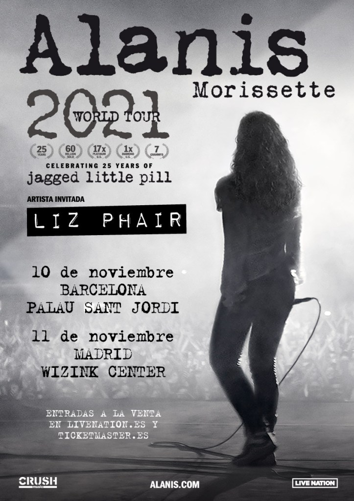 La cantante, compositora y ganadora de siete premios GRAMMY® Alanis Morissette confirma hoy nuevas fechas para su gira, con la que celebrará los 25 años de JAGGED LITTLE PILL durante 2021 y 2022. El tour, que suma 35 fechas en EE.UU., arrancará el 12 de agosto de 2021 en Austin (Texas). Producida por Live Nation, visitará ciudades como Dallas, Nashville, Denver o Los Ángeles, donde por petición del público, Alanis Morissette ofrecerá un especial de dos noches en The Hollywood Bowl los días 5 y 6 de octubre.