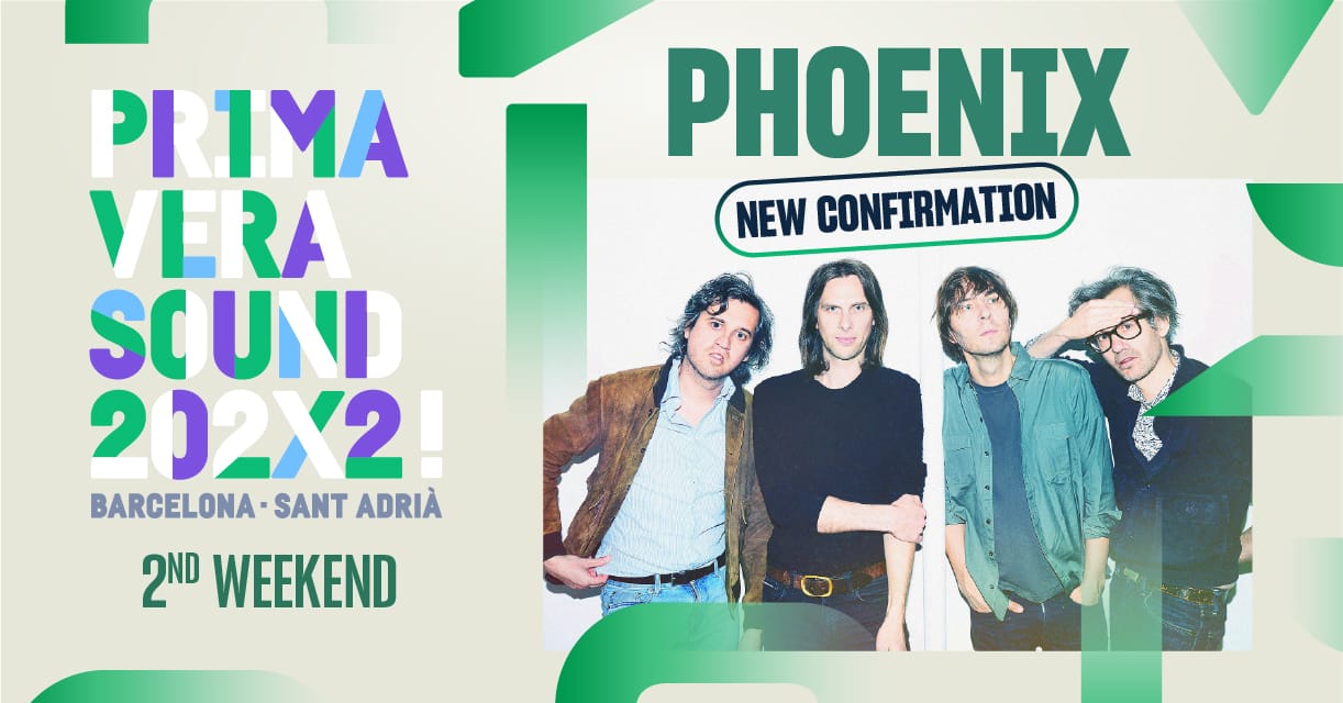 La primera de las sorpresas que faltaban por desvelar del monumental cartel de Primavera Sound 2022 Barcelona – Sant Adrià llega desde Versalles: Phoenix, uno de los grupos que han definido el pop francés de las últimas dos décadas, se suman al festival y actuarán el sábado 11 de junio en el Parc del Fòrum. Thomas Mars, Deck ďArcy, Laurent Brancowitz y Christian Mazzalai volverán así al festival barcelonés casi diez años después de su anterior visita, en 2013, en la que ofrecieron un show inolvidable que les confirmó como una de las bandas de su generación.