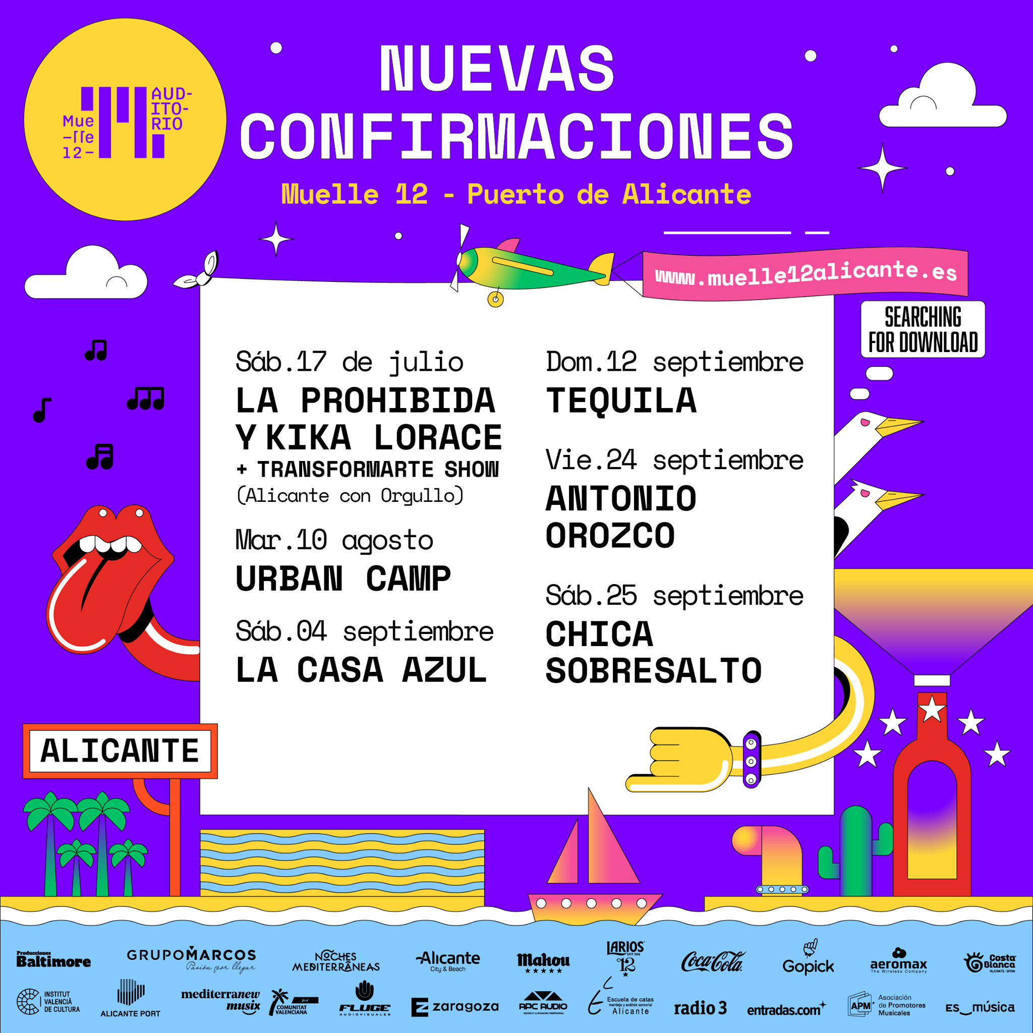 En este sentido, la organización ha revelado hoy nuevos conciertos que se suman a la programación del Auditorio, el escenario principal de Muelle 12 Grupo Marcos. En orden cronológico: La Prohibida y Kika Lorace (17 de julio, con entrada gratuita hasta completar aforo, en el marco de la celebración del Orgullo alicantino), el evento Urban Camp (10 de agosto), La Casa Azul (4 de septiembre), Tequila (12 septiembre), Antonio Orozco (24 de septiembre) y Chica Sobresalto (25 de septiembre).