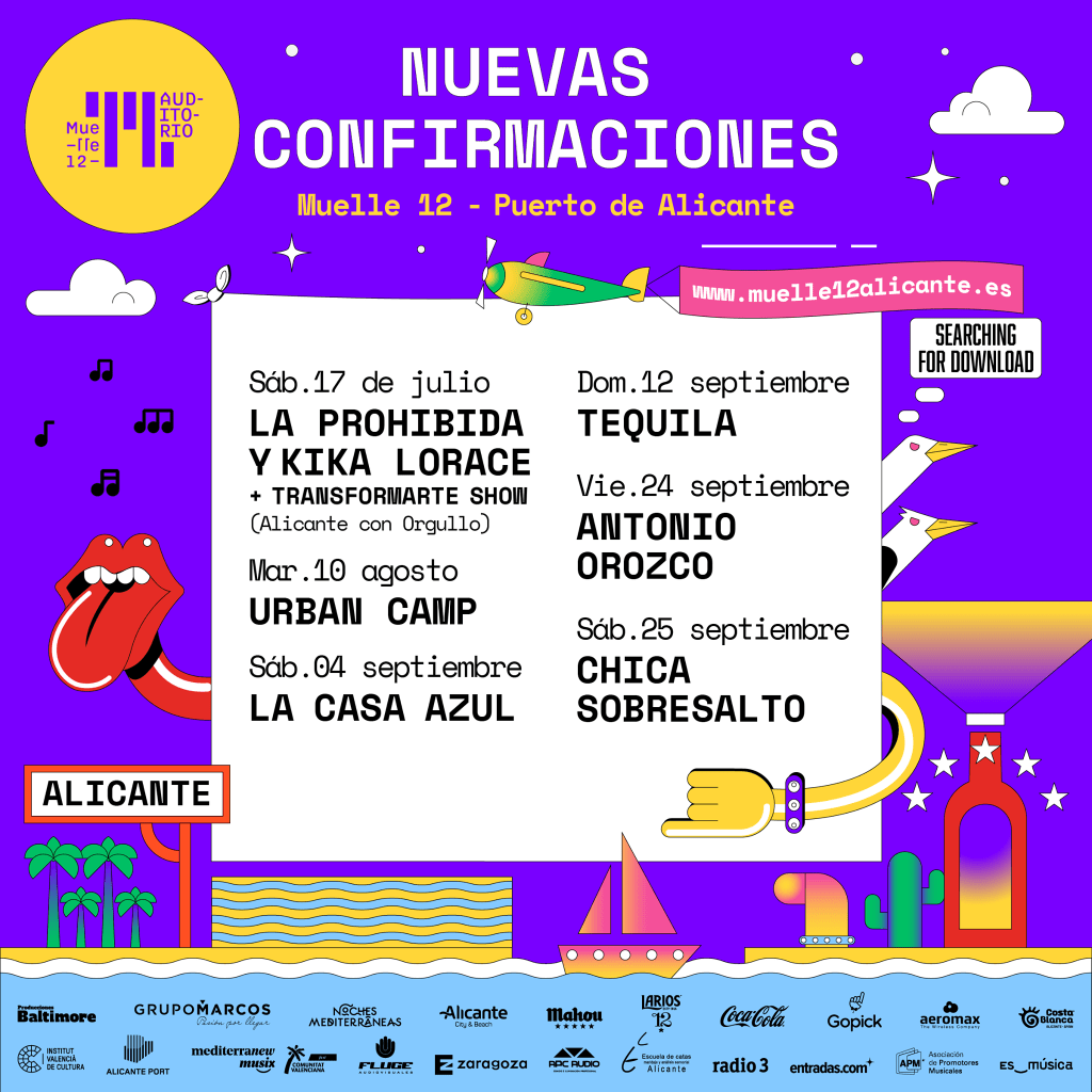 Las entradas para los shows están a la venta en muelle12alicante.es y Entradas.com, a excepción del de Tequila, a la venta en Mastickets.es.