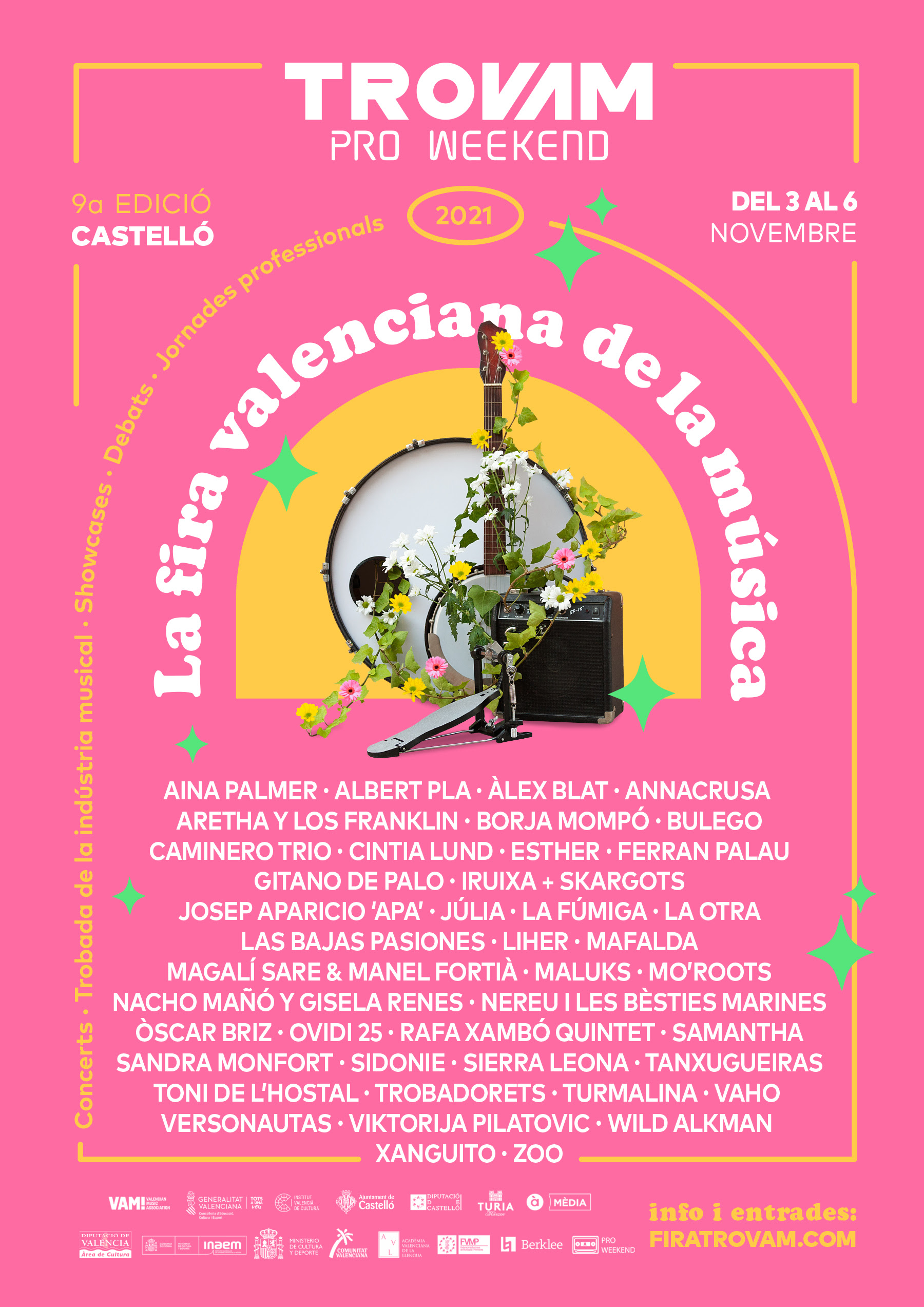 La Fira Valenciana de la Música Trovam – Pro Weekend está organizada por la Valencian Music Association (VAM!) en colaboración con el Institut Valencià de Cultura (IVC), la concejalía de Cultura del Ayuntamiento de Castelló de la Plana y el área de Cultura de la Diputación de Castelló. Asimismo, cuenta con la colaboración de À Punt Mèdia, el Instituto Nacional de las Artes Escénicas y la Música (INAEM), Turisme Comunitat Valenciana, la Acadèmia Valenciana de la Llengua (AVL), la Federación Valenciana de Municipios y Provincias (FVMP), la Diputación de València, la Berklee College of Music y Cerveza Turia, entre otros organismos.