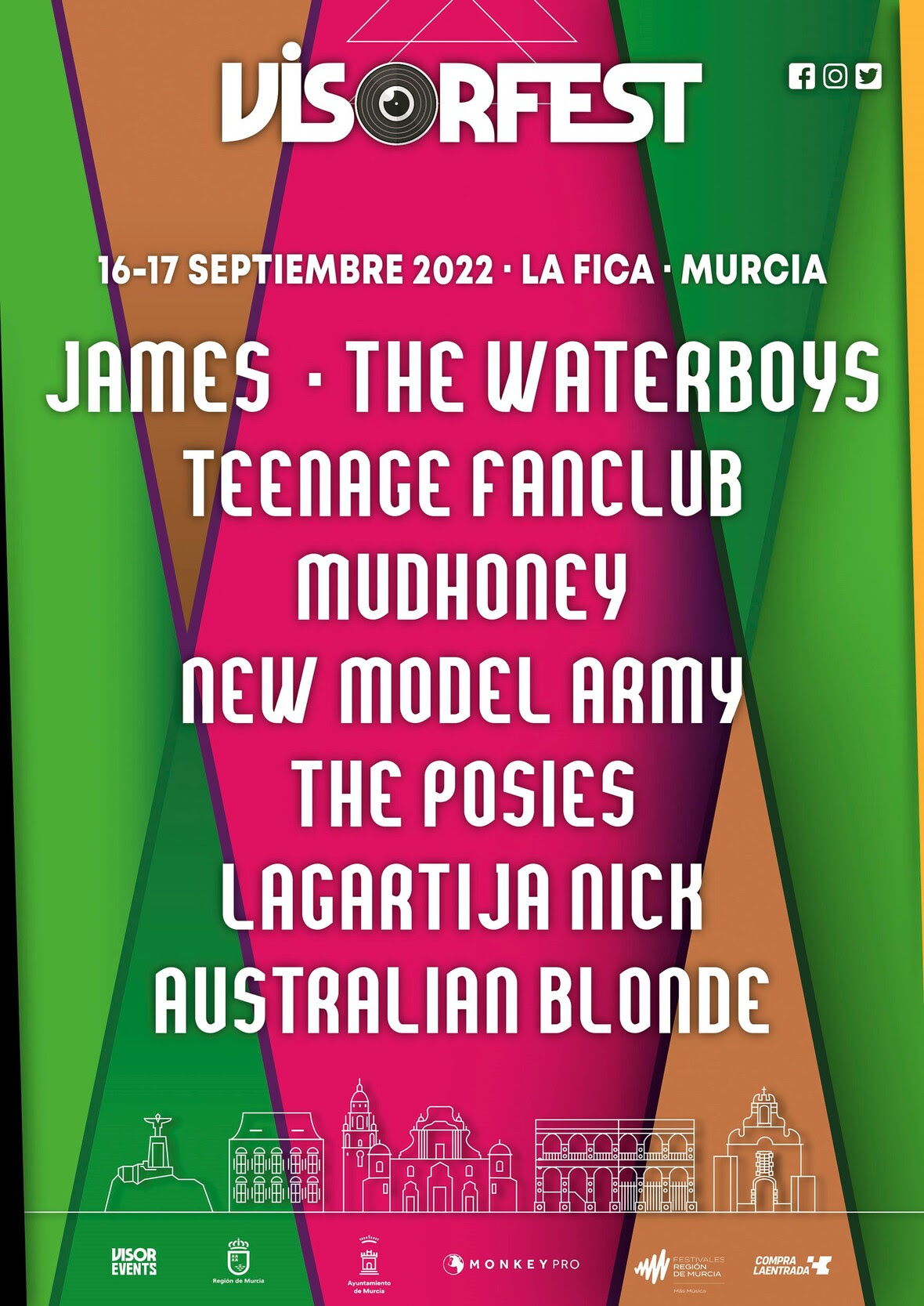 La cita nacional con la música de los 80 y los 90, Visor Fest, regresará los días 16 y 17 de septiembre de 2022 con un cambio de sede. Será el recinto de La Fica, en Murcia, una ciudad fuertemente vinculada a la música en directo, quien acoja a partir de ahora uno de los festivales más singulares de nuestra escena. Y para esta primera edición en nuevas tierras, Visor Fest contará con el espectacular cartel anunciado antes de la pandemia tras la confirmación de los británicos James, que encabezan un line up de órdago que completan The Waterboys, Teenage Fanclub, Mudhoney, New Model Army, The Posies, Lagartija Nick y Australian Blonde.