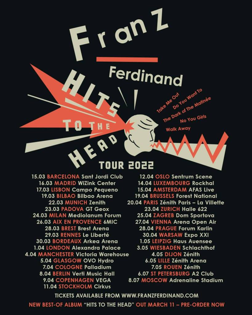 Franz Ferdinand, la máquina escocesa que lleva más de 20 años confeccionando himnos generacionales, estará el 15 de marzo en el Sant Jordi Club de Barcelona, el 16 de marzo en el WiZink Center de Madrid y el 19 de marzo en elBilbao Arena de Bilbao para repasar todos sus grandes éxitos. Estos grandes éxitos se incluirán en ‘Hits To The Head’ el primer recopilatorio oficial de la banda que verá la luz el 11 de marzo de 2022 y que incluye además el nuevo single ‘Billy Goodbye’, publicado el pasado miércoles.