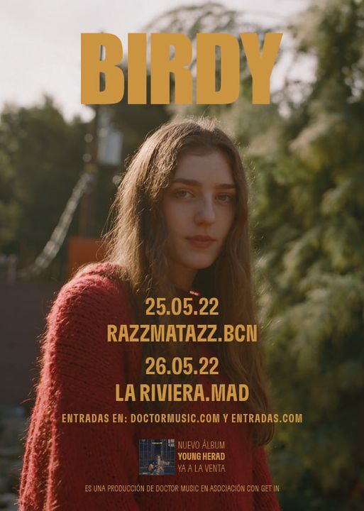 Siguiendo al lanzamiento de su cuarto álbum de estudio, Young Heart, aclamado por la crítica como «un viaje hermoso y poético a través de la angustia…un álbum magnífico»como lo calificaba NME, y justo antes de la actuación especial que ofrecerá en el Kentish Town Forum de Londres el 21 de noviembre, Birdy anuncia hoy una gran gira europea para 2022. Con inicio de gira el 3 de mayo en Londres, Birdy se embarca en su primer tour desde 2016, con el que regresa también a Barcelona y Madrid. La veremos en directo el 25 de mayo en la sala Razzamtazz de Barcelona y el día 26 de mayo en La Riviera de Madrid.