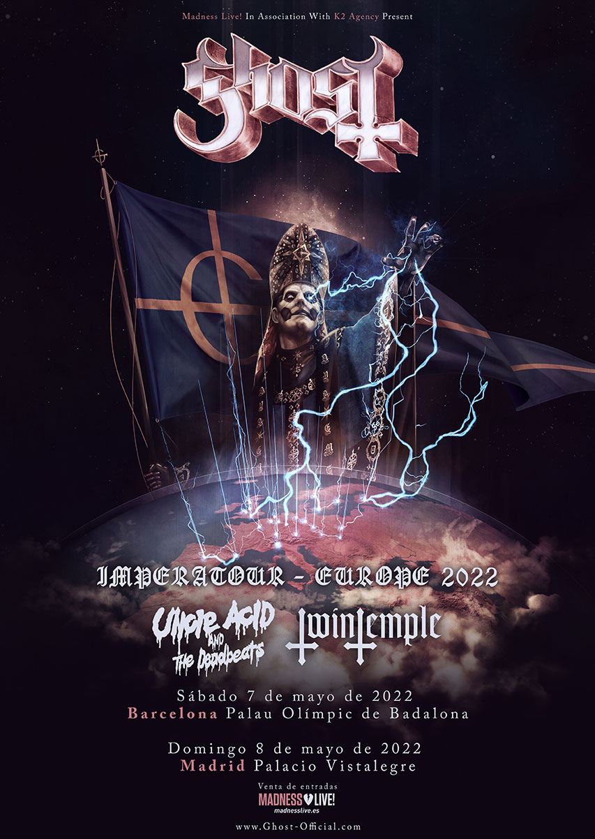 Hoy, cuando las nubes se oscurecen y después de dos años de silencio, misterio y devoción, al fin nuestro papa se manifiesta. Renovado y más poderoso que nunca, Papa Emeritus IV traerá la liturgia de Ghost a nuestro país el próximo año dentro de su gira europea más grande hasta la fecha, el «IMPERATOUR – EUROPE 2022».