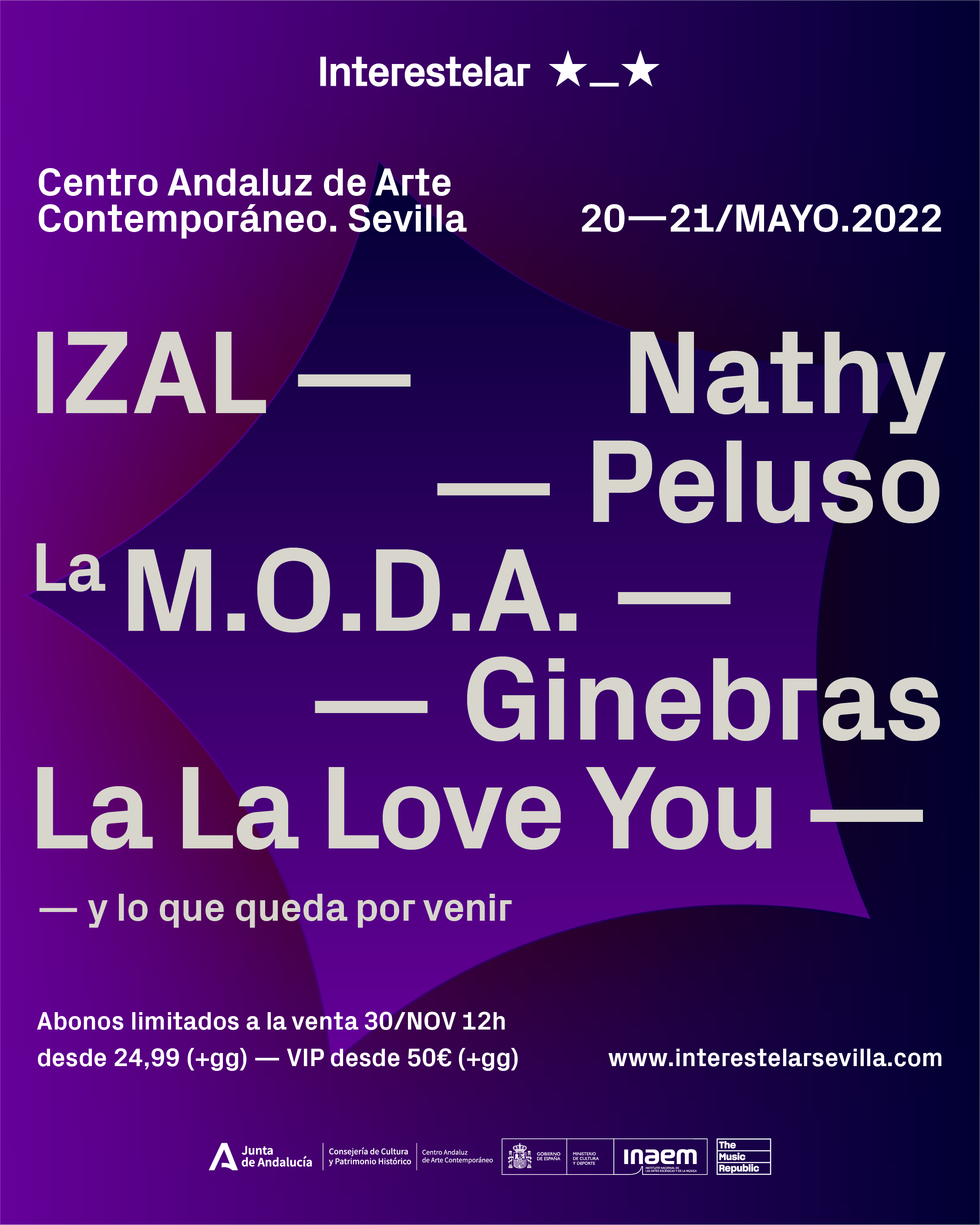 IZAL, Nathy Peluso, La M.O.D.A., Ginebras y La La Love You se suben a la nave para que podamos disfrutar como nunca ¡Podrás conseguir tus abonos elmartes 30 de noviembre a las 12:00h del mediodía desde 24,99€ + gg.