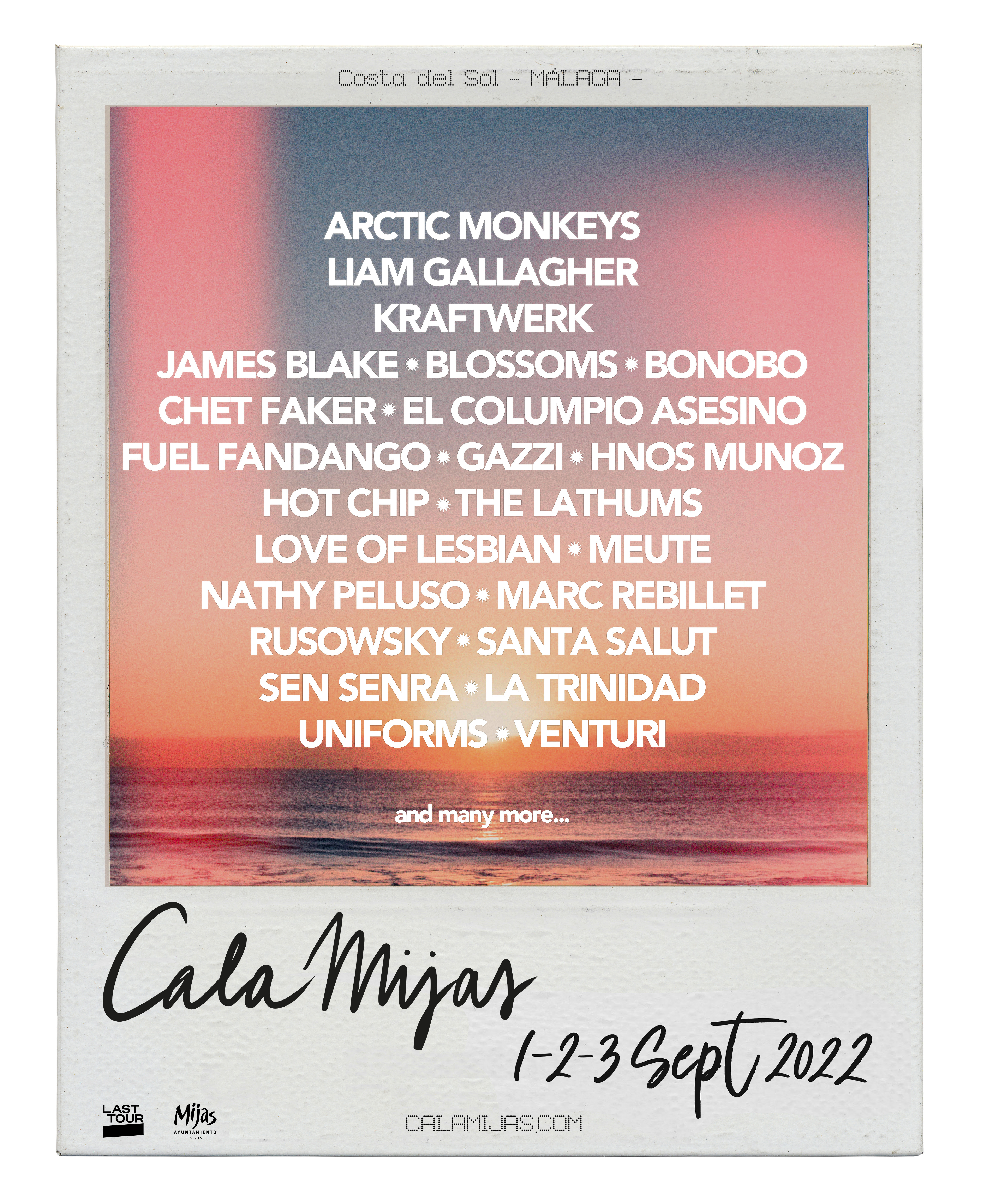 Tras una primera tanda de confirmaciones que nos dejó sorprendidos a la mayoría por la calidad y nivel de las confirmaciones, hoy la organización del Cala Mijas Festival confirma su apuesta con nuevos nombres de primer nivel. Tras anunciar a artistas de la talla de Arctic Monkeys (única actuación en España en 2022) o Kraftwerk, hoy se suman al cartel Liam Gallagher, James Blake, Bonobo, Marc Rebille, MEUTE, Fuel Fandango, GAZZI , Santa Salut, y La Trinidad.