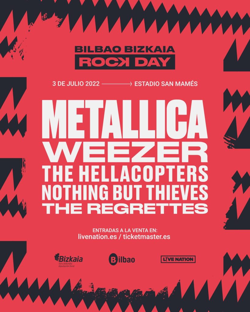 Bilbao Bizkaia Rock Day, traerá el próximo 3 de julio a Metallica, Weezer, The Hellacopters, Nothing But Thieves y The Regrettes al estadio San Mamés.