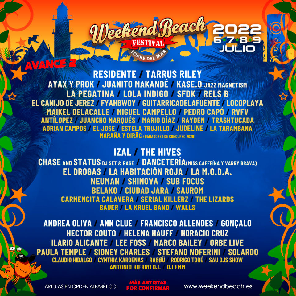RESIDENTE, TARRUS RILEY, THE HIVES,IZAL, KASE.O, SFDK, AYAX Y PROK , ANN CLUE, LA M.O.D.A, LA HABITACIÓN ROJA, FRANCISCO ALLENDES, EL DROGAS, BELAKO, LA PEGATINA, JUANITO MAKANDÉ, EL CANIJO DE JEREZ, HELENA HAUFF, LOLA INDIGO, FYAHBWOY, LOCOPLAYA, MIGUEL CAMPELLO, NEUMAN, SHINOVA, SUBFOCUS, ANTÍLOPEZ, HORACIO CRUZ, , JUANCHO MARQUÉS, MAIKEL DELACALLE, MARIO DÍAZ, RAYDEN, TRASHTUCADA, ILARIO ALICANTE, MARCO BAILEY, ORBE live, PAULA TEMPLE y muchos más.