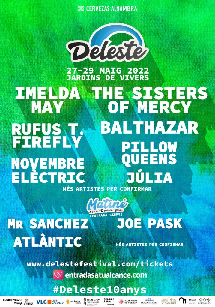 Por otro lado, el festival anuncia la iniciativa Matiné Deleste, una serie de conciertos gratuitos que tendrán lugar en los propios Jardines de Viveros y que servirán de escaparate de bandas valencianas. Además del directo de Mr Sanchez, formación de rock alternativo, el público también podrá escuchar las propuestas de Atlàntic y Joe Pask. Los primeros facturan melodías de power-pop directas y eléctricas y su segundo trabajo, Volem els ponts, fue galardonado como mejor disco de pop en los Premios Ovidi 2020. Por otro lado, Joe Pask es la formación encabezada por el alcoyano Josué Miró y ha dejado buenas muestras de pop-rock con regusto estadounidense en los discos Salt (2018) y Jo i el món (2021).