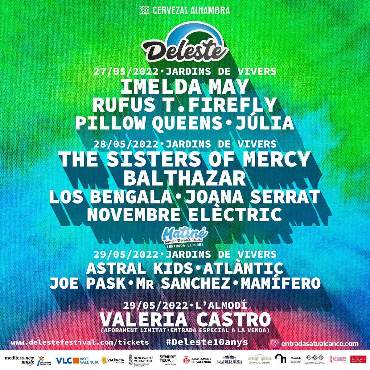Éstas son las actividades que acompañarán a un calendario musical de primer nivel que tendrá lugar en los Jardines de Viveros desde el viernes 27 por la tarde hasta el domingo 29 de mayo con 15 grupos encabezados por Imelda May, The Sisters of Mercy, Balthazar, Rufus T. Firefly, Pillow Queens, Joana Serrat y Valeria Castro, quien se encargará de clausurar el festival en el Almudín la tarde del domingo con un espectáculo que cuenta con la colaboración del Palau de la Música de València y la concejalía de Cultura del Ayuntamiento de València.