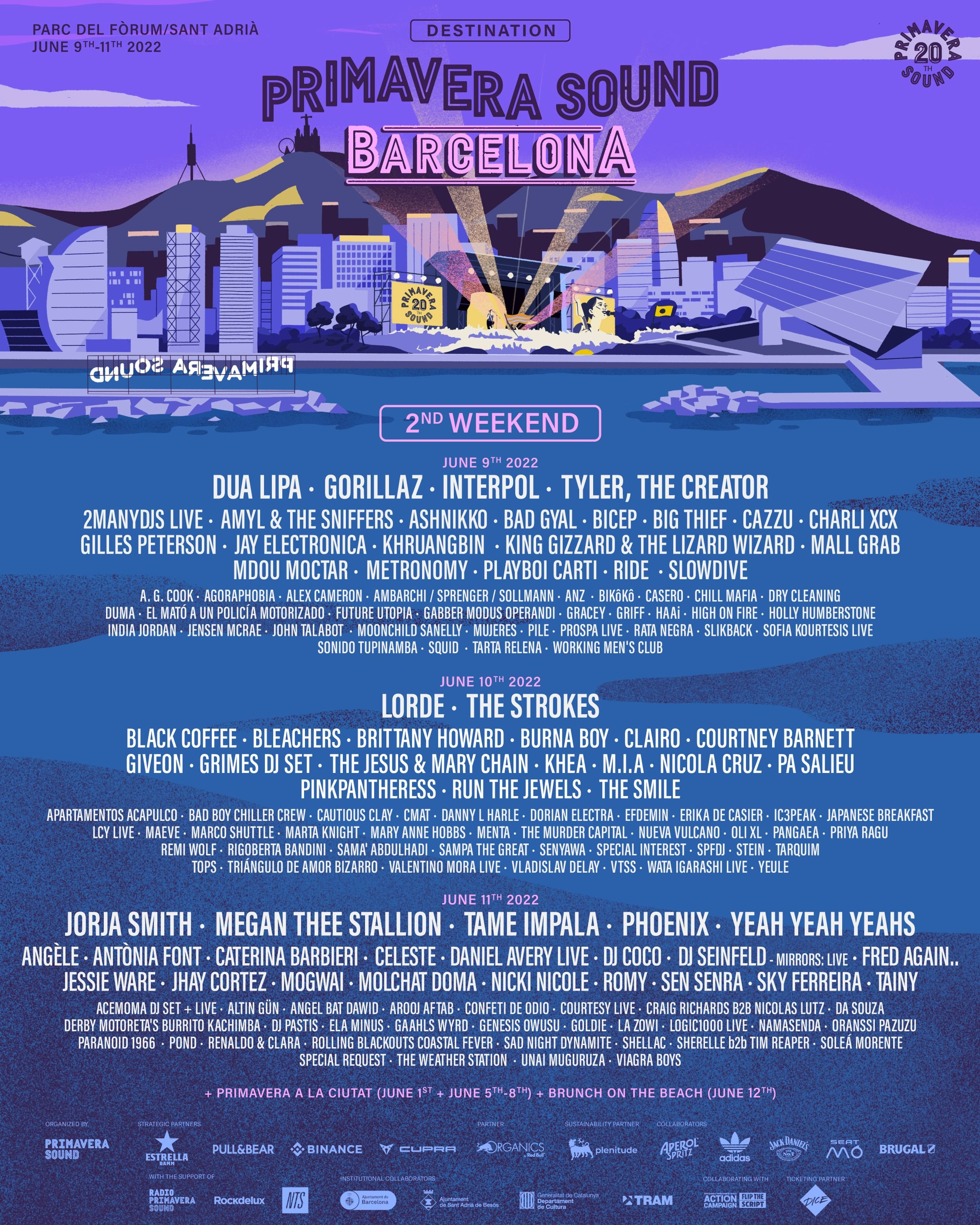 Nos lo hemos imaginado, hemos fantaseado con ello. La película del vigésimo aniversario de Primavera Sound se ha proyectado varias veces en nuestros mejores sueños y ahora, por fin, la vuelta al festival tres años después asoma en el horizonte definitivamente. Un despliegue sin precedentes, con más de 500 actuaciones repartidas entre el Parc del Fòrum, diferentes salas y espacios de la ciudad y la playa de Sant Adrià de Besòs, que condensará los sonidos más excitantes de hoy para convertir Barcelona en el cruce de caminos más concurrido de la música contemporánea: todas las rutas imaginables terminan pasando por el cartel de Primavera Sound.