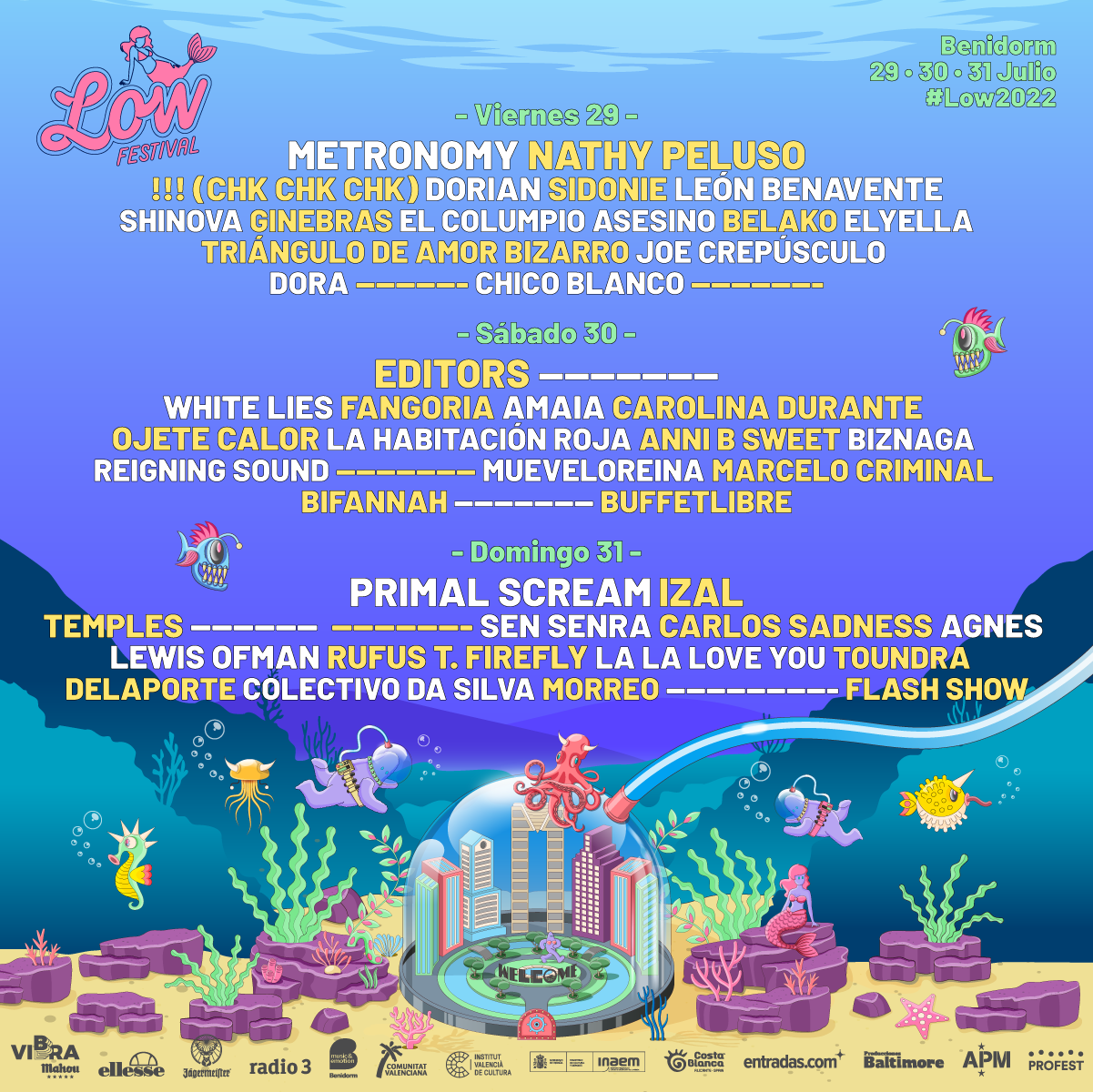 Low Festival continúa anunciado novedades de su próxima edición de 2020. El festival de Benidorm, cita imprescindible del verano, encara ya la recta final de su cita del 29, 30 y 31 de julio con una larga lista de artistas nacionales e internacionales que presentarán sus nuevos trabajos y sus temas más míticos y coreables. Primal Scream, Izal -uno de sus últimos shows antes de su parón indefinido-, Metronomy, Editors, Amaia y Nathy Peluso entre otros.