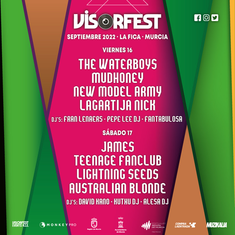 Visor Fest, la cita musical nacional con los sonidos de los 80 y 90, poblada de artistas y bandas totalmente vigentes en la actualidad, anuncia hoy su fabulosa distribución por jornadas. Toma buena nota porque el viernes 16 de septiembre podremos disfrutar de The Waterboys, Mudhoney, New Model Army y Lagartija Nick. De igual modo, el sábado 17 le tocará el turno a James, Teenage Fanclub, Lightning Seeds y Australian Blonde. Todo ello regado por la exquisita selección de DJ’s que amenizarán cada velada: Fran Lenaers, Pepe Lee DJ y Fantabulosa DJ en la noche del viernes, y David Kano, Kutxu DJ y Alesa DJ en la del sábado.