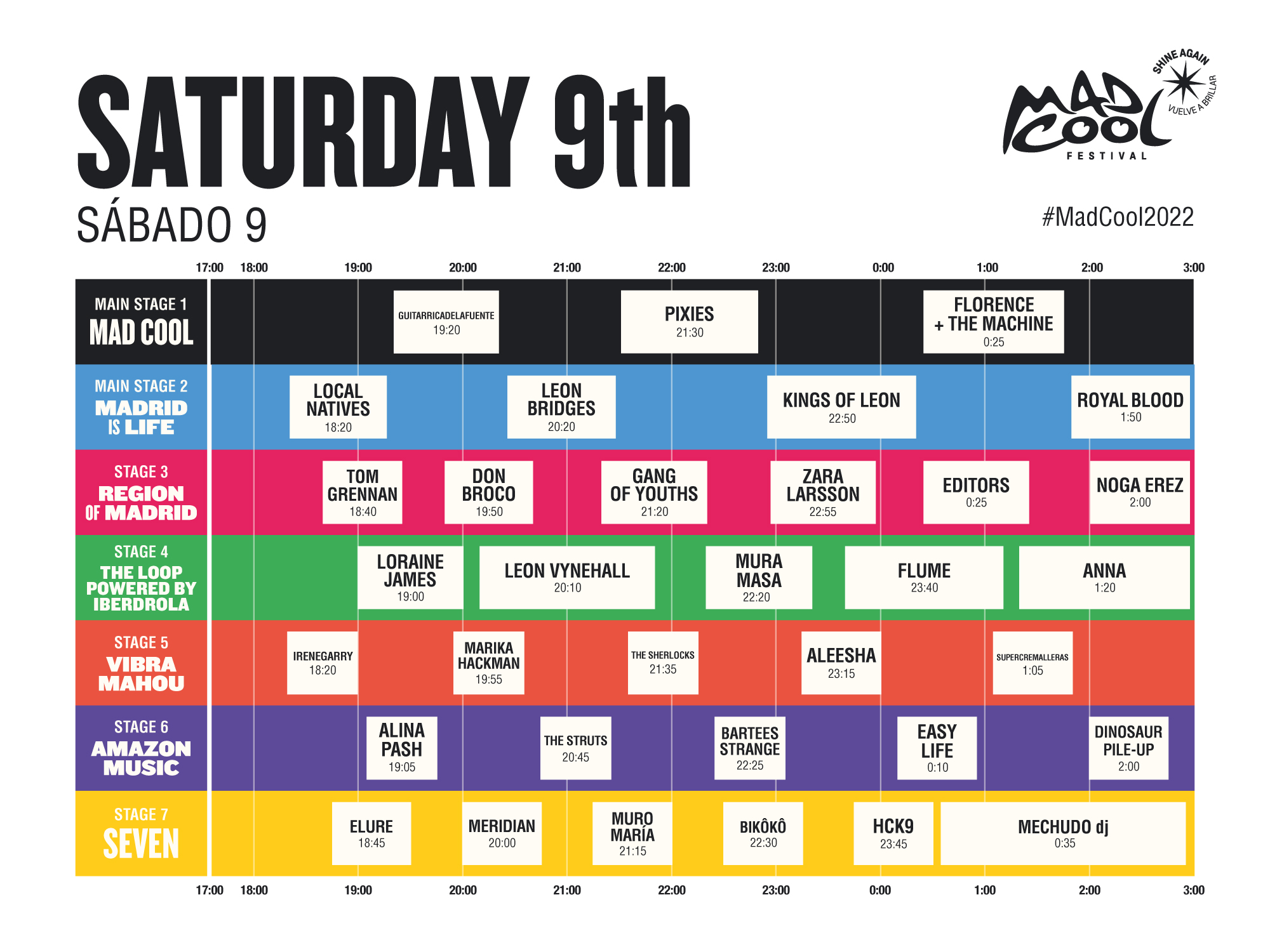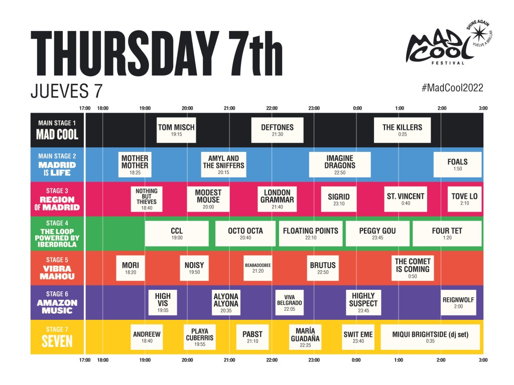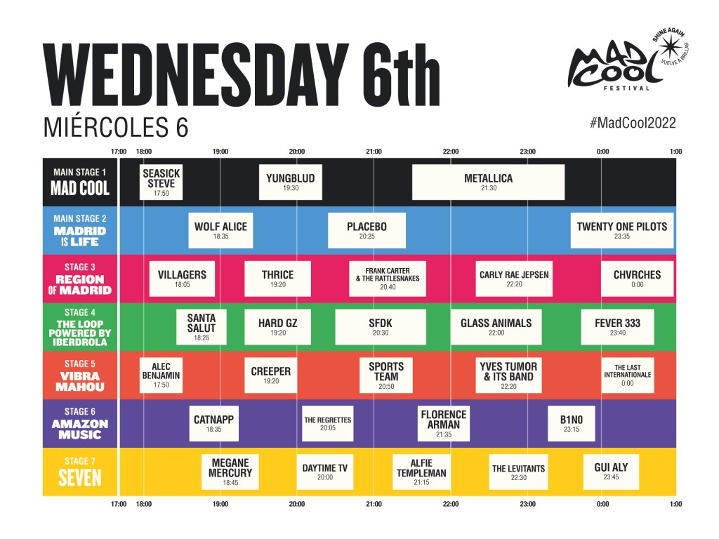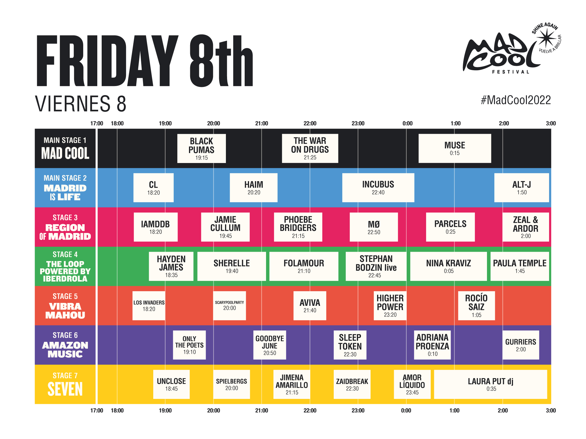 Mad Cool Festival 2022 ya tiene los horarios oficiales para su quinta edición. Con un total de siete escenarios, toda la información sobre dónde y a qué hora tocarán todos los artistas ya está disponible. Además, con la nueva App de Mad Cool Festival podrás revisar en cualquier momento los horarios, el line-up…