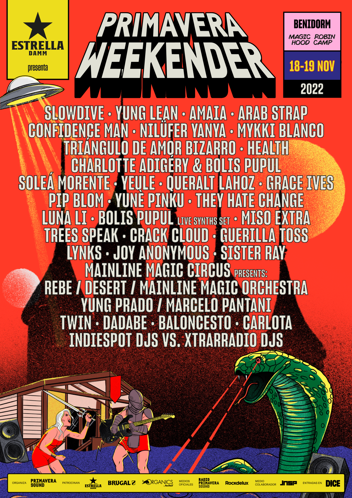 Benidorm acogerá la tercera edición de Primavera Weekender 2022 con un cartel en el que conviven nostalgia, puro presente y futuro prometedor. Artistas, bandas y asistentes compartirán escenarios y bungalows en un recinto pintoresco y único: