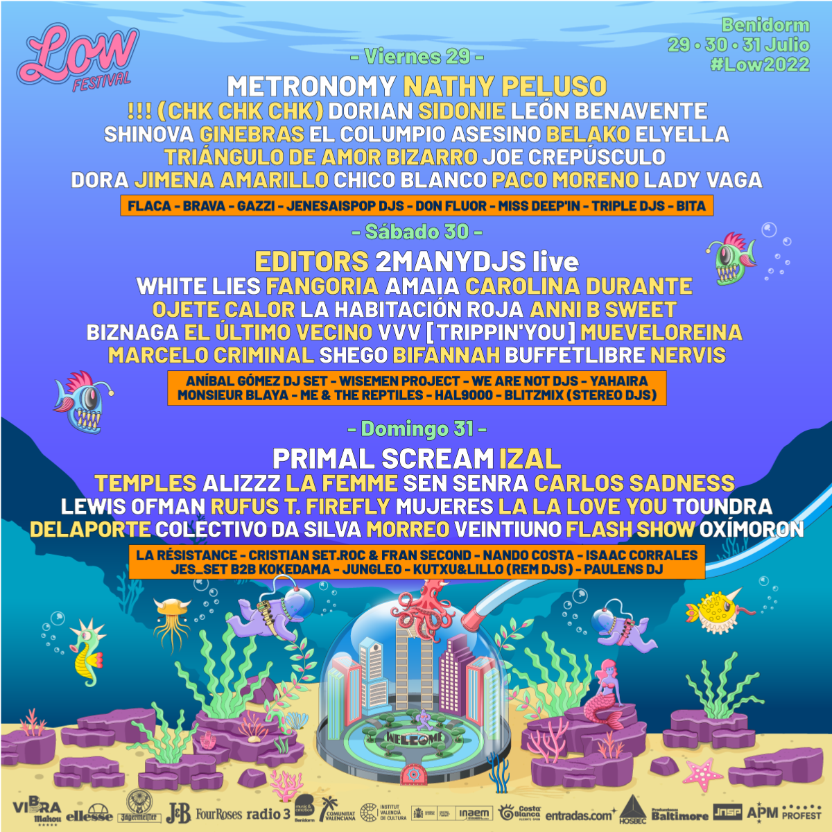 En Benidorm ya está a punto de empezar a sonar la música. Durante tres días, la ciudad de los rascacielos se viste de lower para acoger la edición más esperada de Low Festival, con 76 grandes nombres como Metronomy, Editors, NathyPeluso, Sidonie, Amaia o PrimalScream, entre otros.