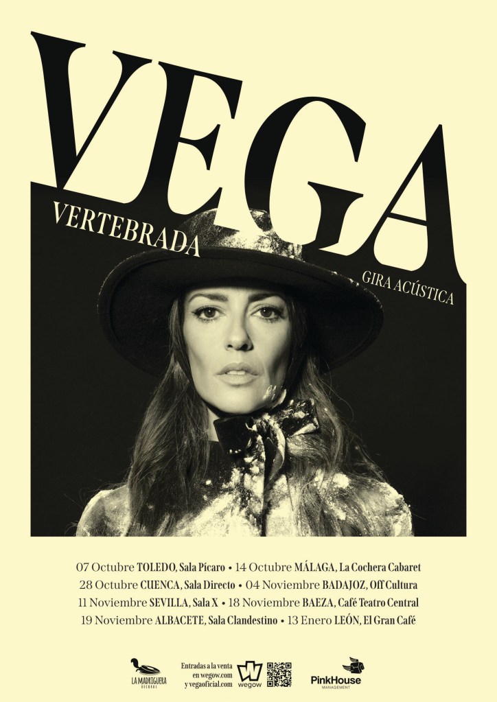 Vega se alía con Wegow para presentar un cómputo de paradas por España en las que presentará su proyecto de forma más cercana y en acústico. Su gira «Vertebrada» comenzará el próximo 7 de octubre en Toledo y llegará a su fin tres meses después, el 13 de enero en León. Todas las entradas para la gira acústica de Vega están disponibles en Wegow.