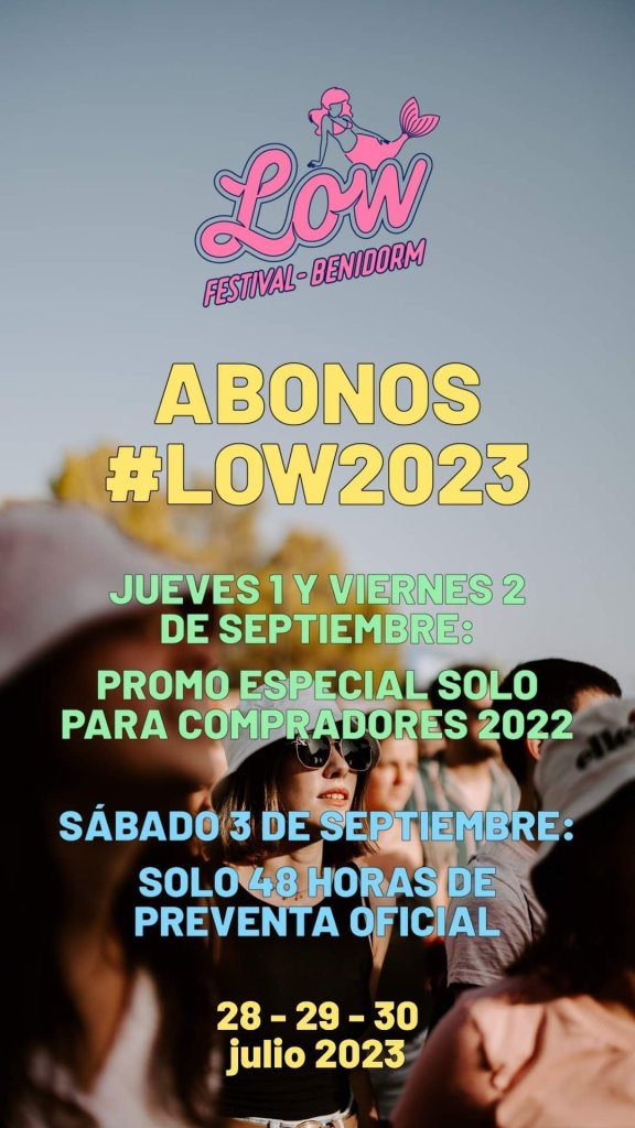 Low Festival 2023 no se hace esperar. Tras una de las ediciones más esperadas de su historia, la organización del festival anuncia que el 28, 29 y 30 de julio el festival volverá a la ciudad de Benidorm y, además, lanza la venta hoy sus abonos para #Low2023 a precio muy especial solo para los compradores de 2022.