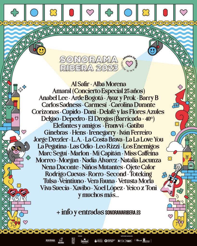 Con 7 premios Grammys Latino 2022 bajo el hombro, Jorge Drexler es otro de los grandes nombres de esta edición del Sonorama Ribera. Uno de los mayores grupos del panorama patrio, Vetusta Morla, arrasan en cada festival al que van, y este no será menos. No pueden faltar tampoco bandas como Viva Suecia, Arde Bogotá o Ginebras. También destacan en el cartel de esta 26 edición los granadinos Ayax y Prok, que han revolucionado el rap de nuestro país y acumulan millones de escuchas en plataformas. Barry B y Hens, añadirán también el toque más urbano del Sonorama Ribera 2023 entre muchos otros.
