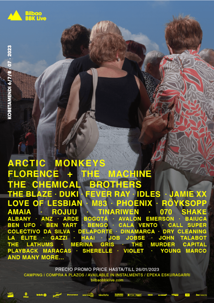 El legado continúa. Se siguen desvelando los artistas de la próxima edición de Bilbao BBK Live 2023, que se celebrará los próximos 6, 7 y 8 de julio en Kobetamendi; y de la misma forma se van desvelando las imágenes que acompañarán la imagen gráfica de esta decimosexta edición del festival. Si ya encabezaban el cartel artistas de la talla de Arctic Monkeys, Florence + The Machine, TheChemical Brothers o The Blaze, una nueva tanda de artistas llega en formato regalo-navideño-adelantado y va completando el ya formidable line-up de 2023.