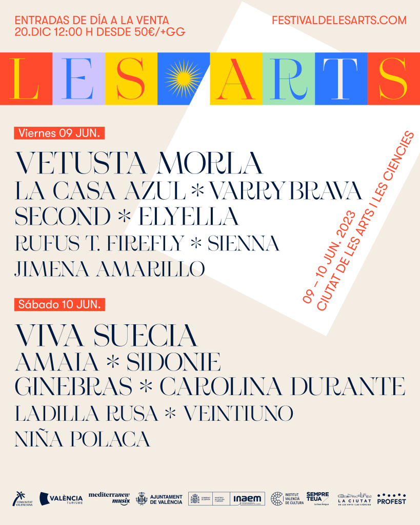 Segunda tanda e confirmaciones del Festival de les Arts; Viva Suecia, La Casa Azul, ELYELLA, Varry Brava, Carolina Durante, Second, Veintiuno, Sienna y Niña Polaca se suman a un cartel que ya estaba formado por Vetusta Morla, Amaia, Sidonie, Rufus T.Firefly, Ladilla Rusa y Jimena Amarillo.
