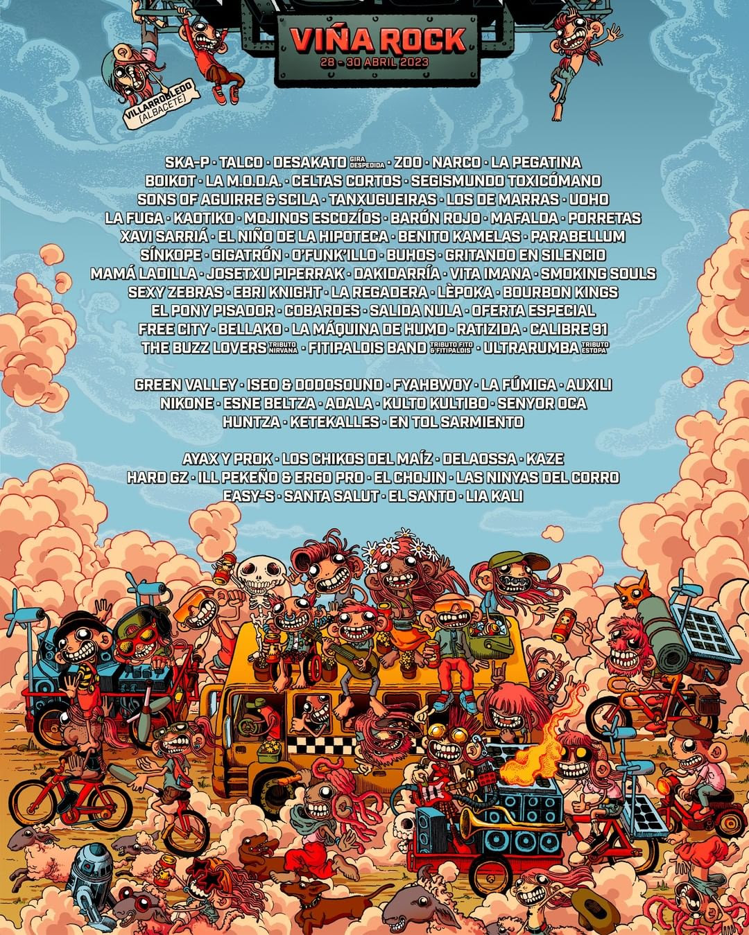 El Viña Rock 2023, que se celebrará en Villarrobledo, Albacete, los días 28, 29 y 30 de abril, ha anunciado su cartel completo con Ska-P y Desakato como principales atracciones, pero también con bandas como Barón Rojo, Uoho o, para todos los gustos, otros conjuntos como Gigatrón, El Niño de la Hipoteca, Porretas, Los de Marras, Parabellum o Gritando en Silencio, entre muchos más.