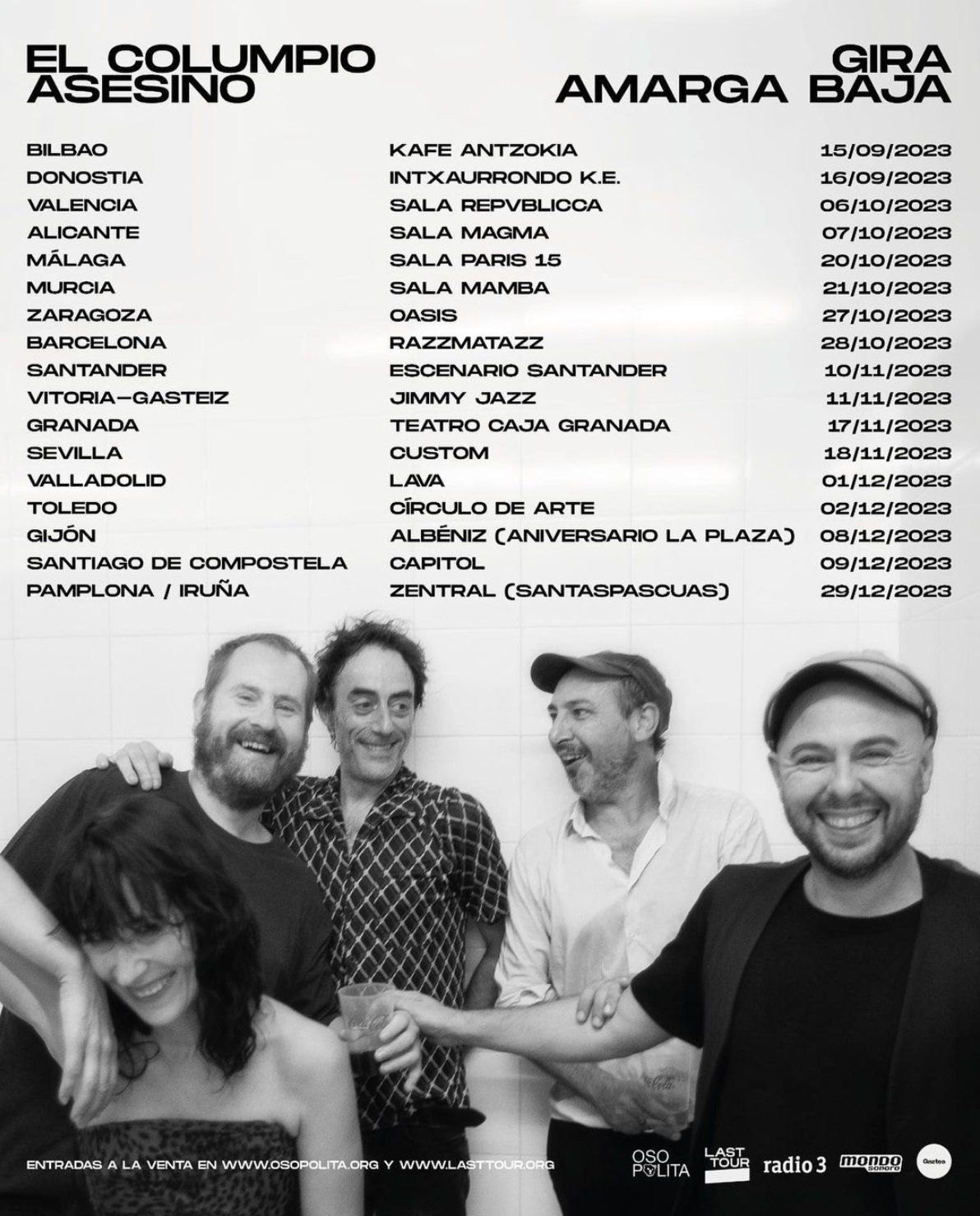 Siempre agradecidos a un calor incondicional de su equipo y sus seguidores, el quinteto dirá adiós a los escenarios pisándolos una última vez. La gira ‘Amarga Baja’ de El Columpio Asesino comenzará a mediados de septiembre y pondrá el broche a finales de diciembre de este año.