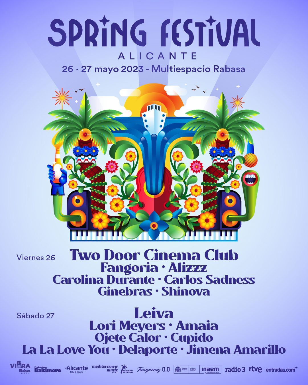 Spring Festival ya tiene su cartel por días. Un line-up muy especial en el que se entremezclan los sonidos y se añade, como novedad este año, la confirmación de la primera gran banda internacional de la historia del festival: Two Door Cinema Club que, junto con Leiva, Fangoria, Lori Meyers, Amaia o Alizzz entre otros y los tres nombres confirmados hace apenas unos días -Carolina Durante, Delaporte y Shinova- conforman un cartel muy ecléctico con gran variedad de sonidos.
