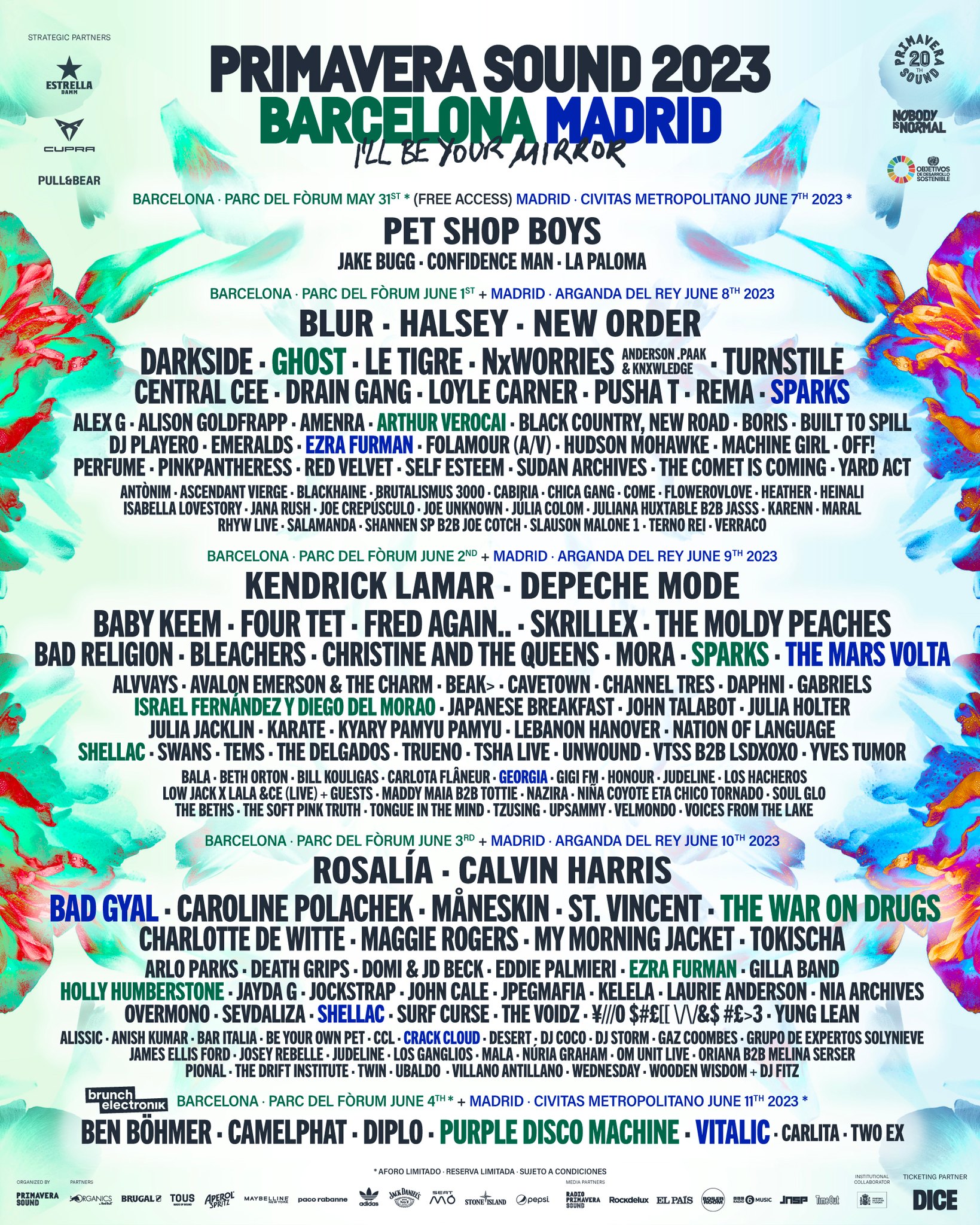 Se enriquece por lo tanto un cartel donde ya esperan Depeche Mode, Blur, Kendrick Lamar, Rosalía, Pet Shop Boys, St. Vincent, Calvin Harris, Le Tigre, Halsey, The Moldy Peaches o Caroline Polachek, entre muchos otros nombres que superan los 150. Nuevos motivos para presagiar que, durante dos fines de semana consecutivos, Barcelona y Madrid se devolverán mutuamente el reflejo más excitante de la música contemporánea en Primavera Sound 2023.