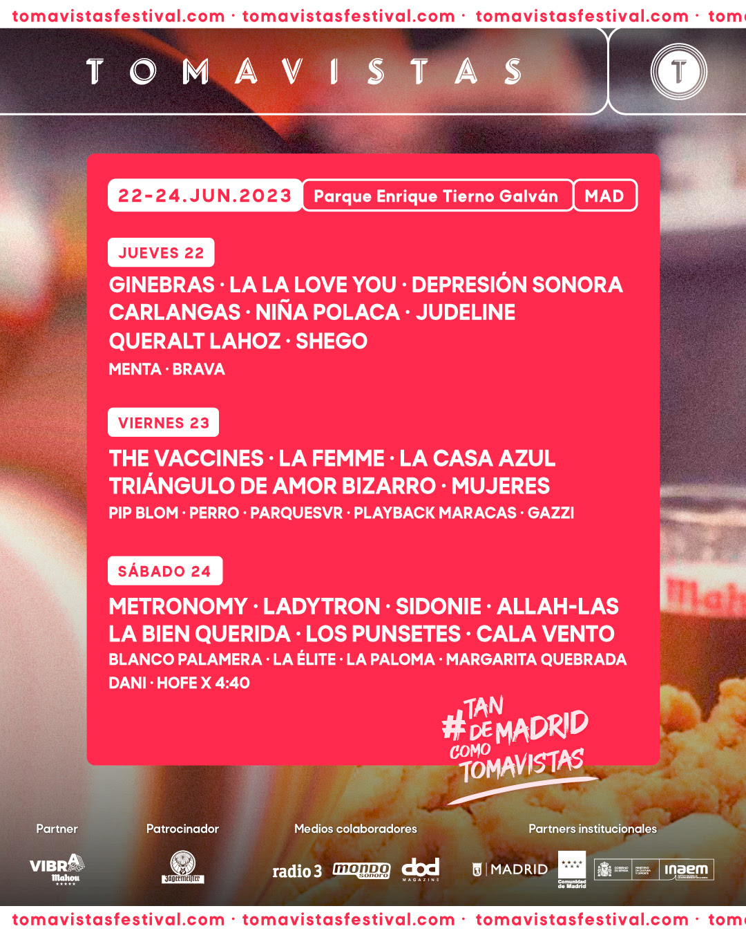 Doble anuncio de Tomavistas 2023. El festival madrileño suma once nuevos nombres a su cartel y desvela además la distribución por días.